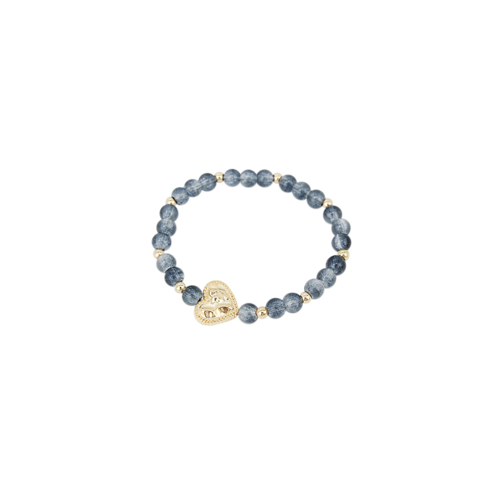 Pulsera elástica de piezas de vidrio con dije exclusivo dorado.