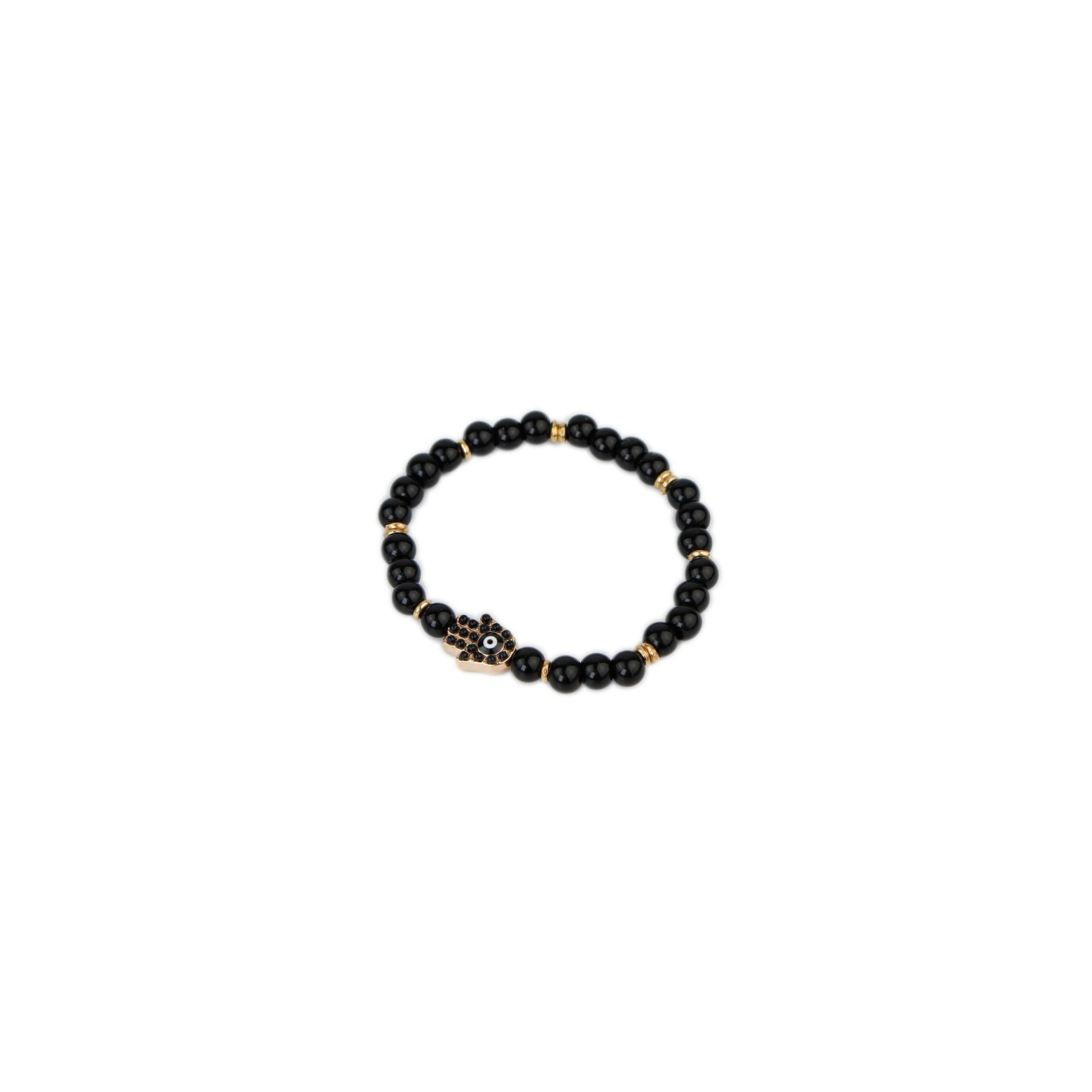 Pulsera elástica de piezas de vidrio con dije exclusivo pintado a mano dorado.