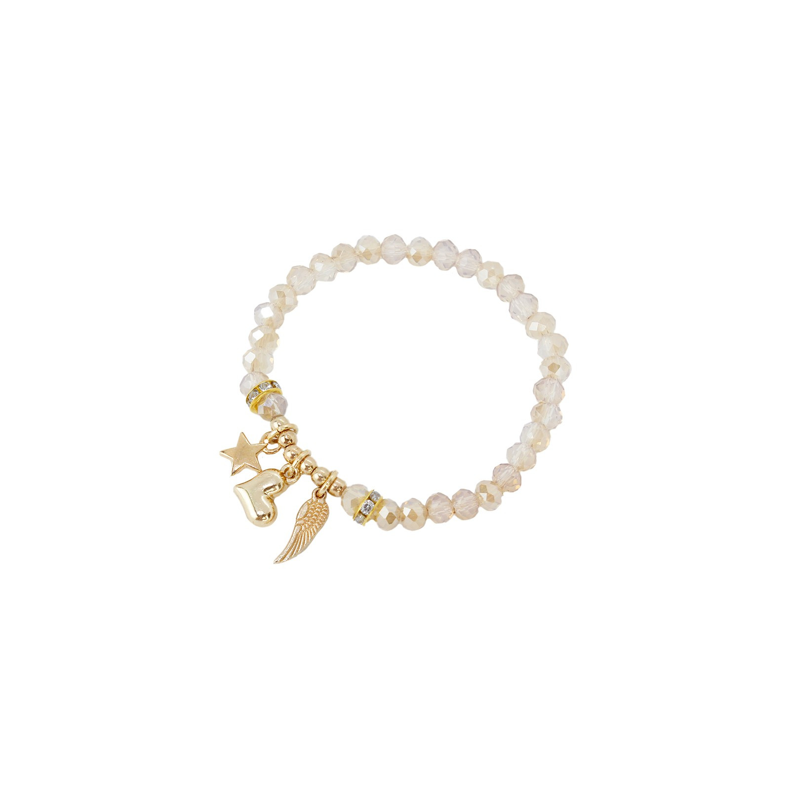 Pulsera elástica de rocas de cristal con dijes exclusivos dorados.