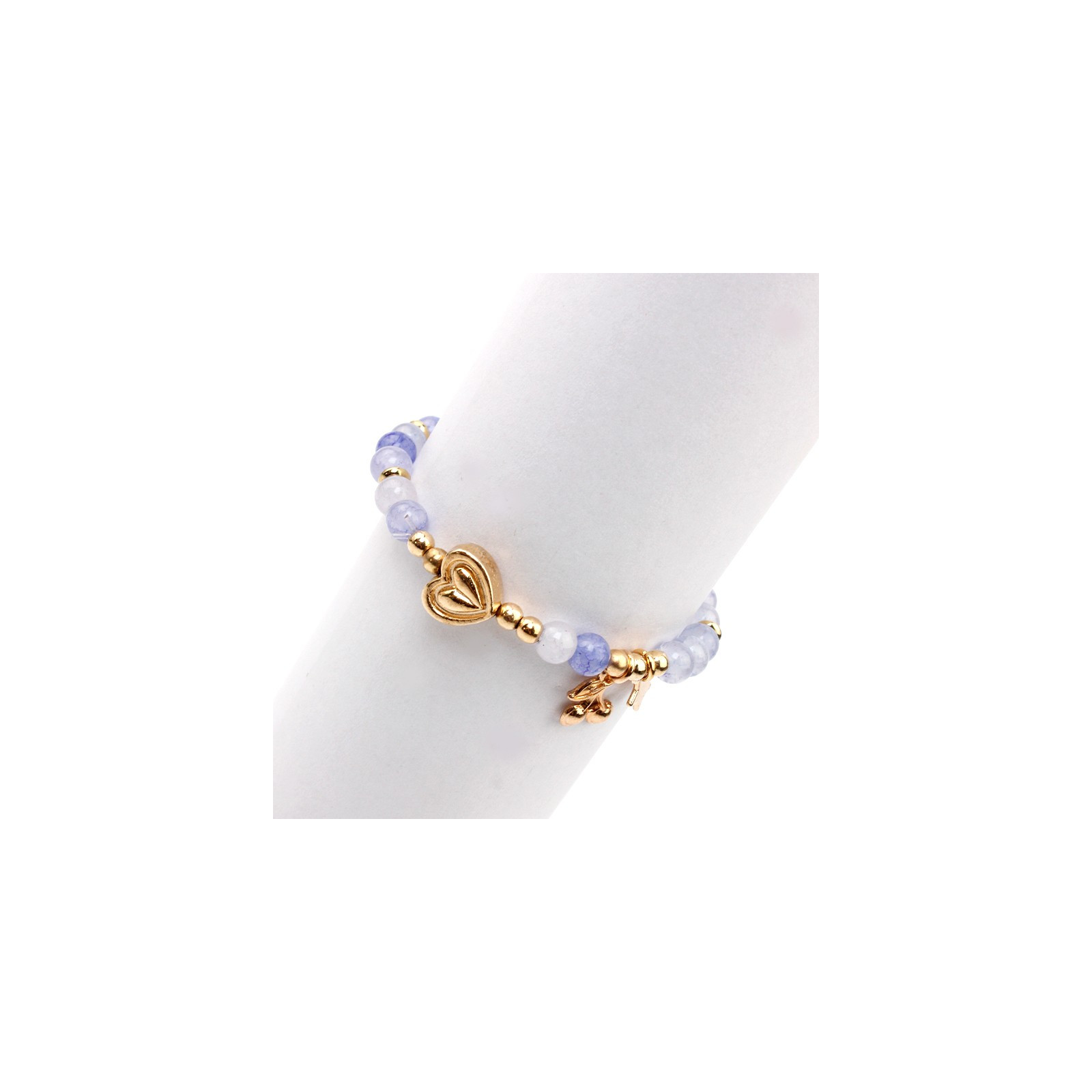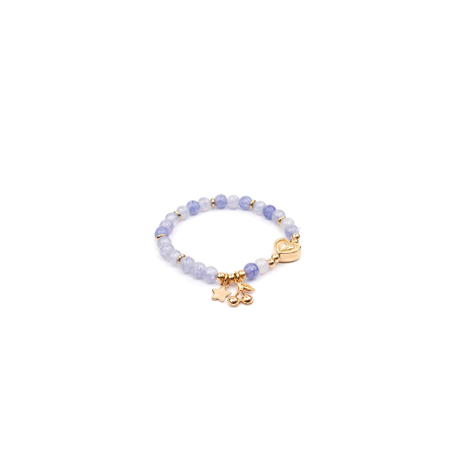 Pulsera elástica de piezas de vidrio con dijes exclusivos dorados.