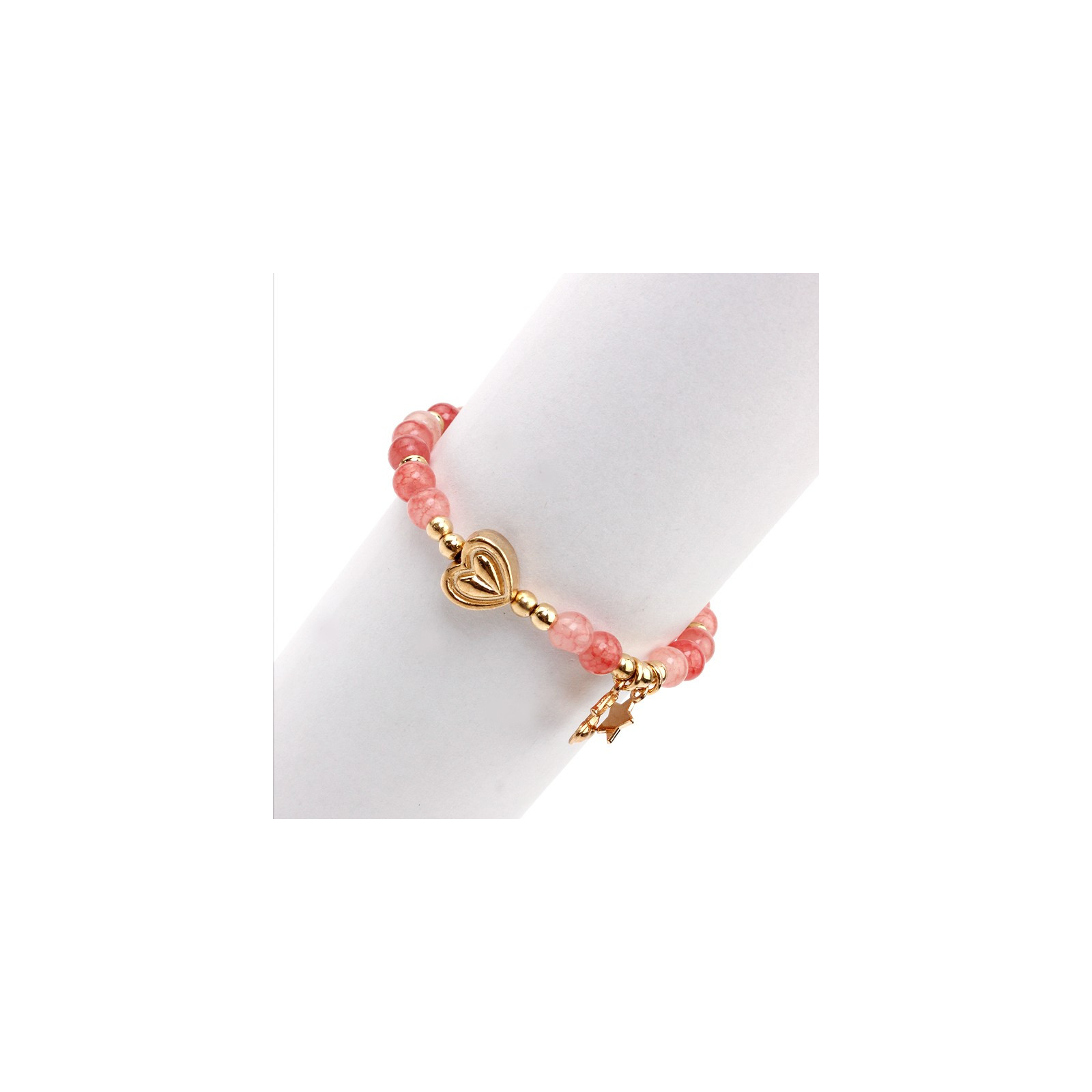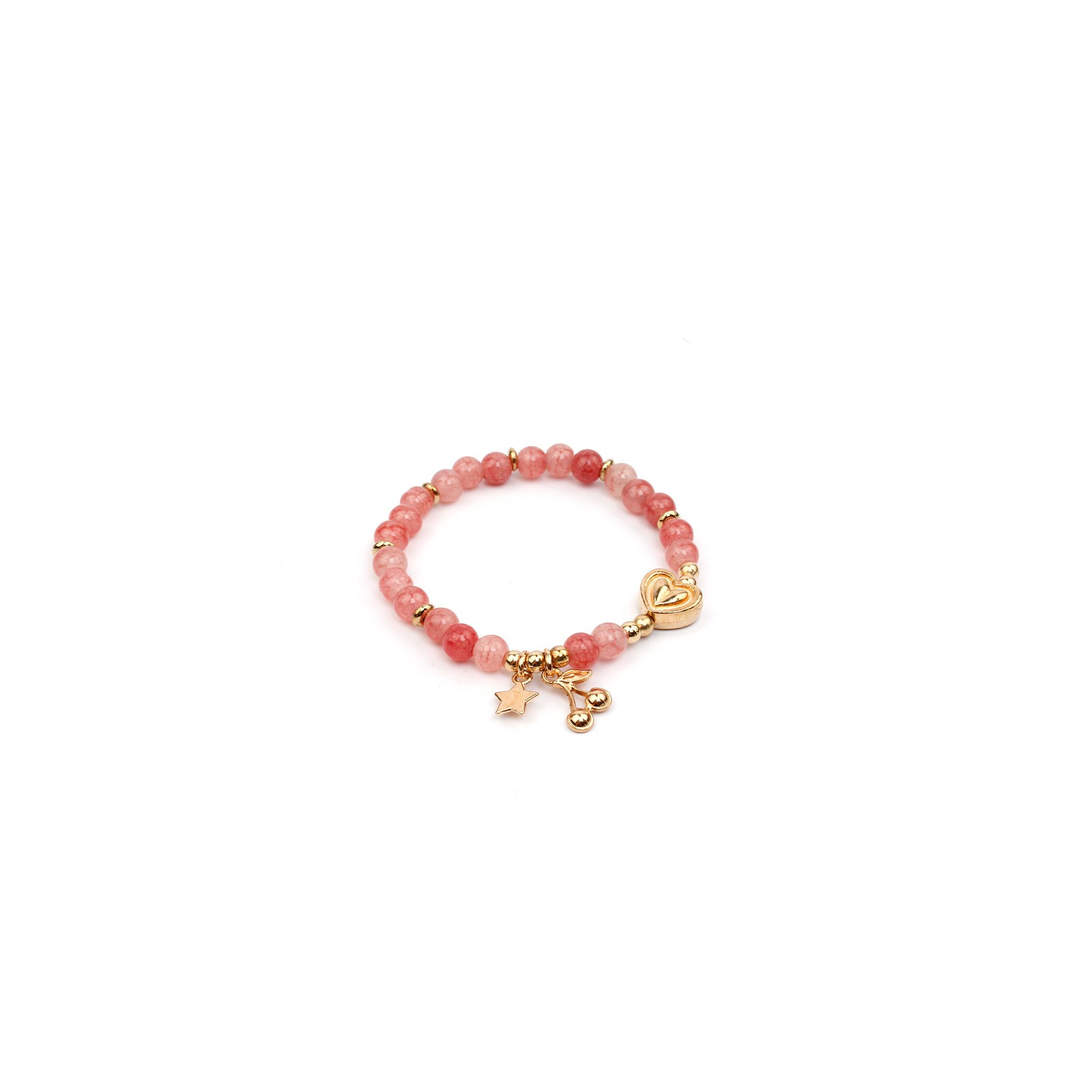 Pulsera elástica de piezas de vidrio con dijes exclusivos dorados.