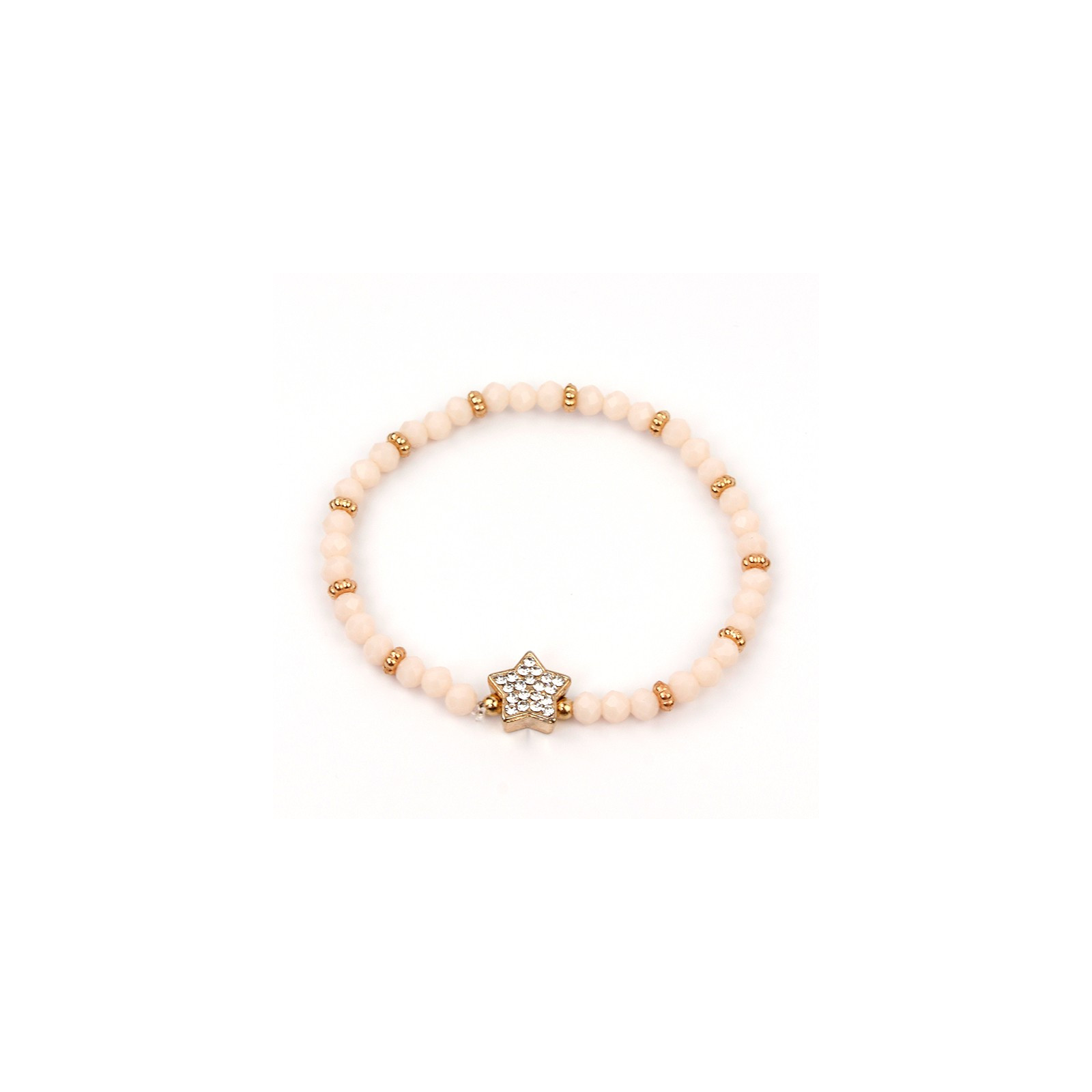 Pulsera elástica de rocas de cristal con dije exclusivo de strass dorado.
