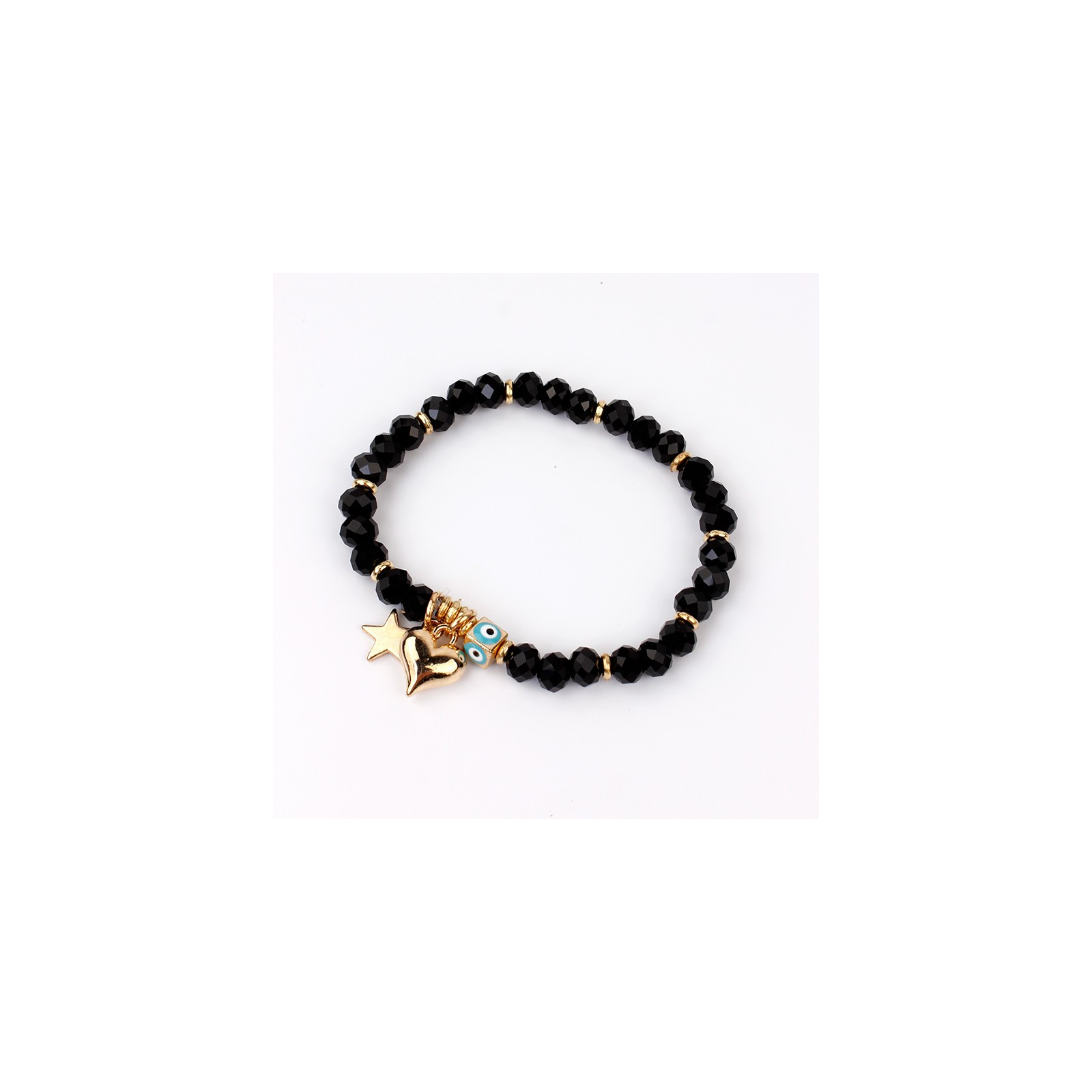Pulsera elástica de rocas de cristal con dijes exclusivos y pintados a mano dorados.