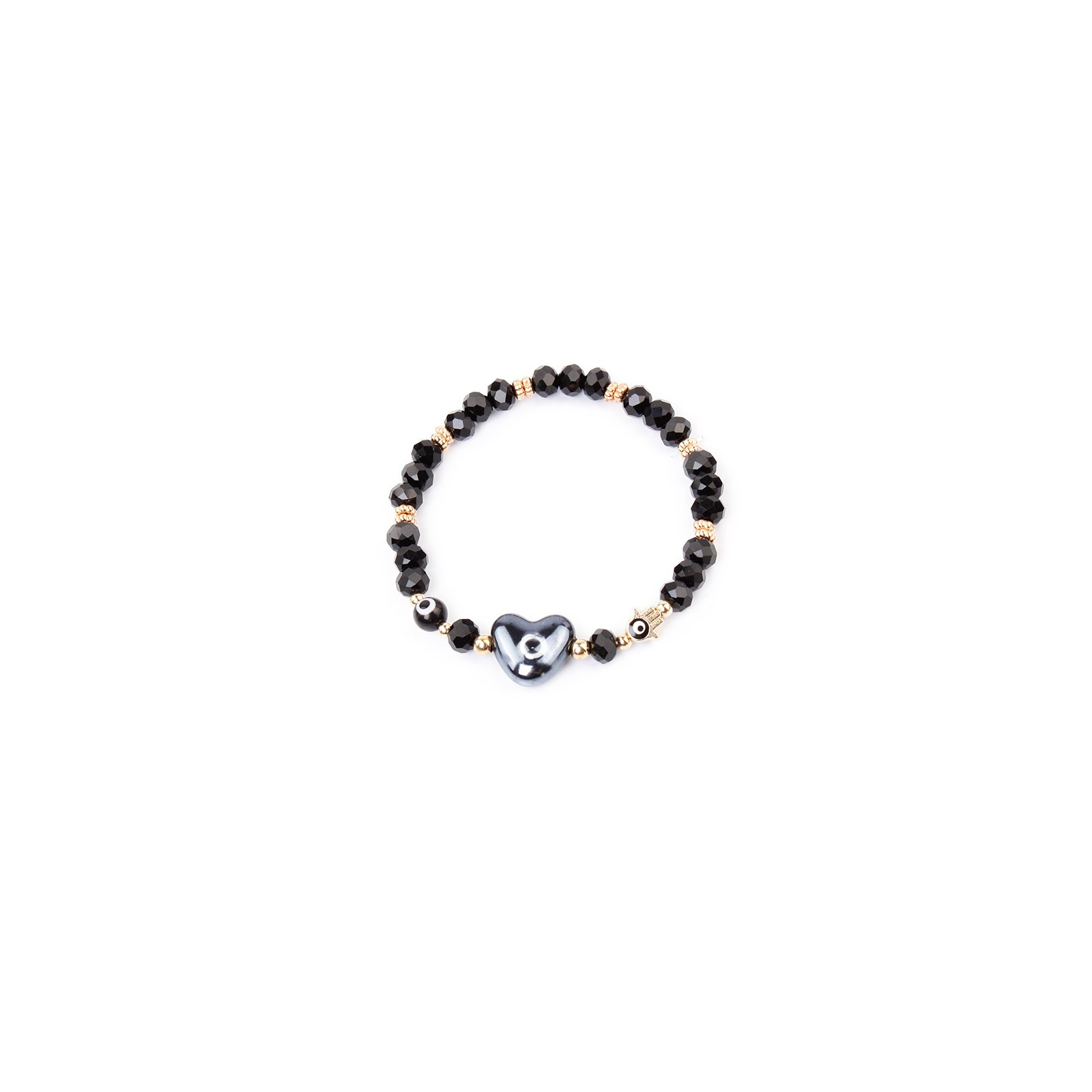 Pulsera elástica de rocas de cristal con pieza exclusiva de cerámica y dijes dorados.