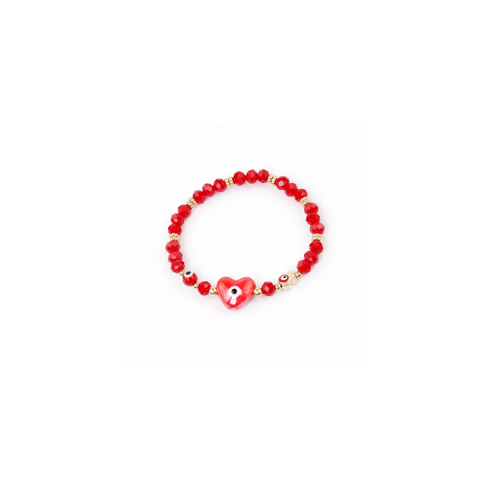 Pulsera elástica de rocas de cristal con pieza exclusiva de cerámica y dijes dorados.