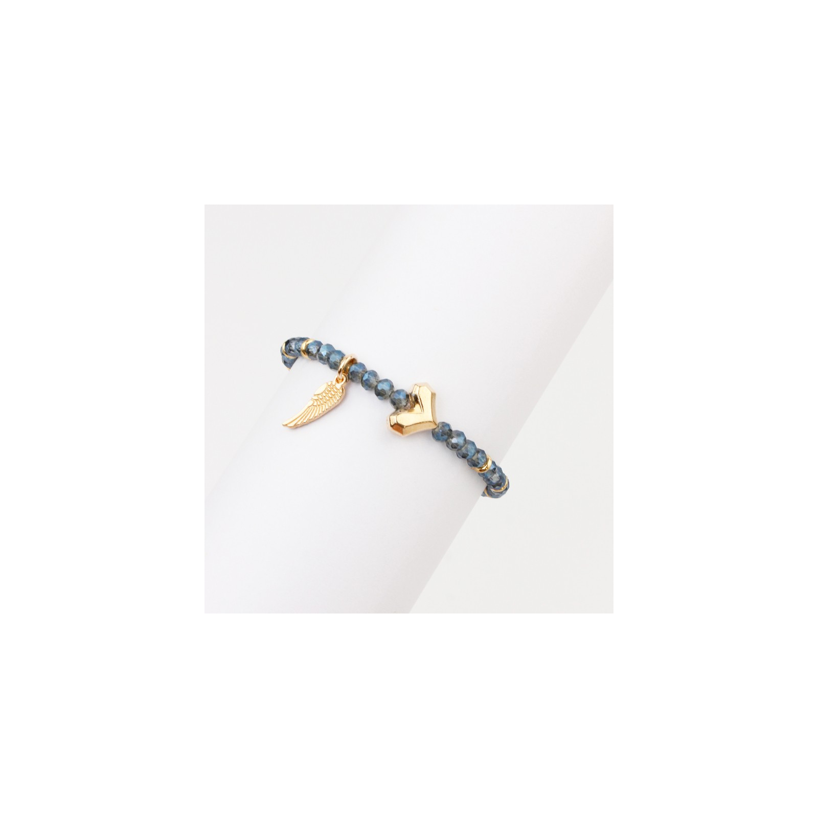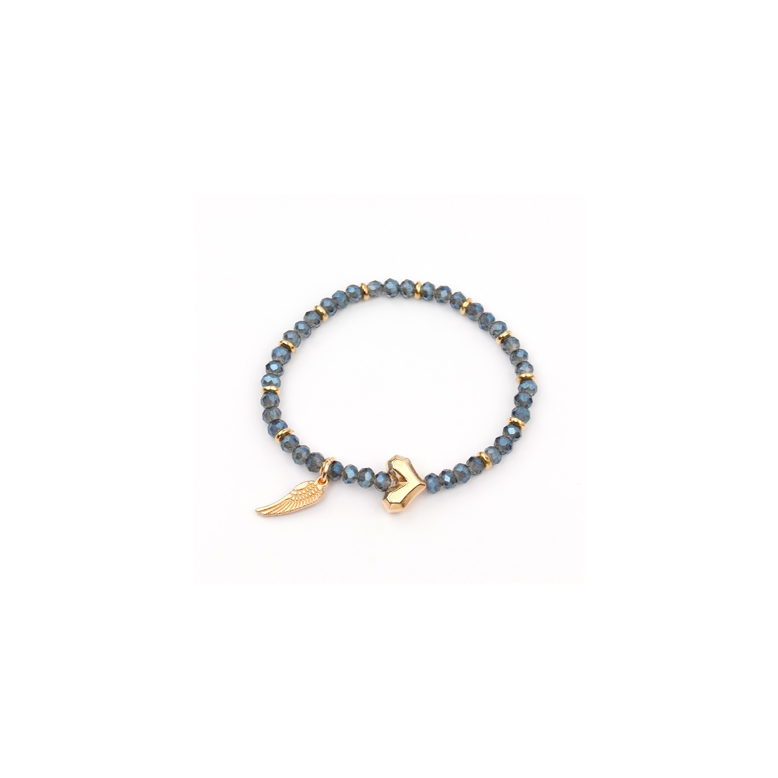 Pulsera elástica de rocas de cristal con dijes exclusivos dorados.