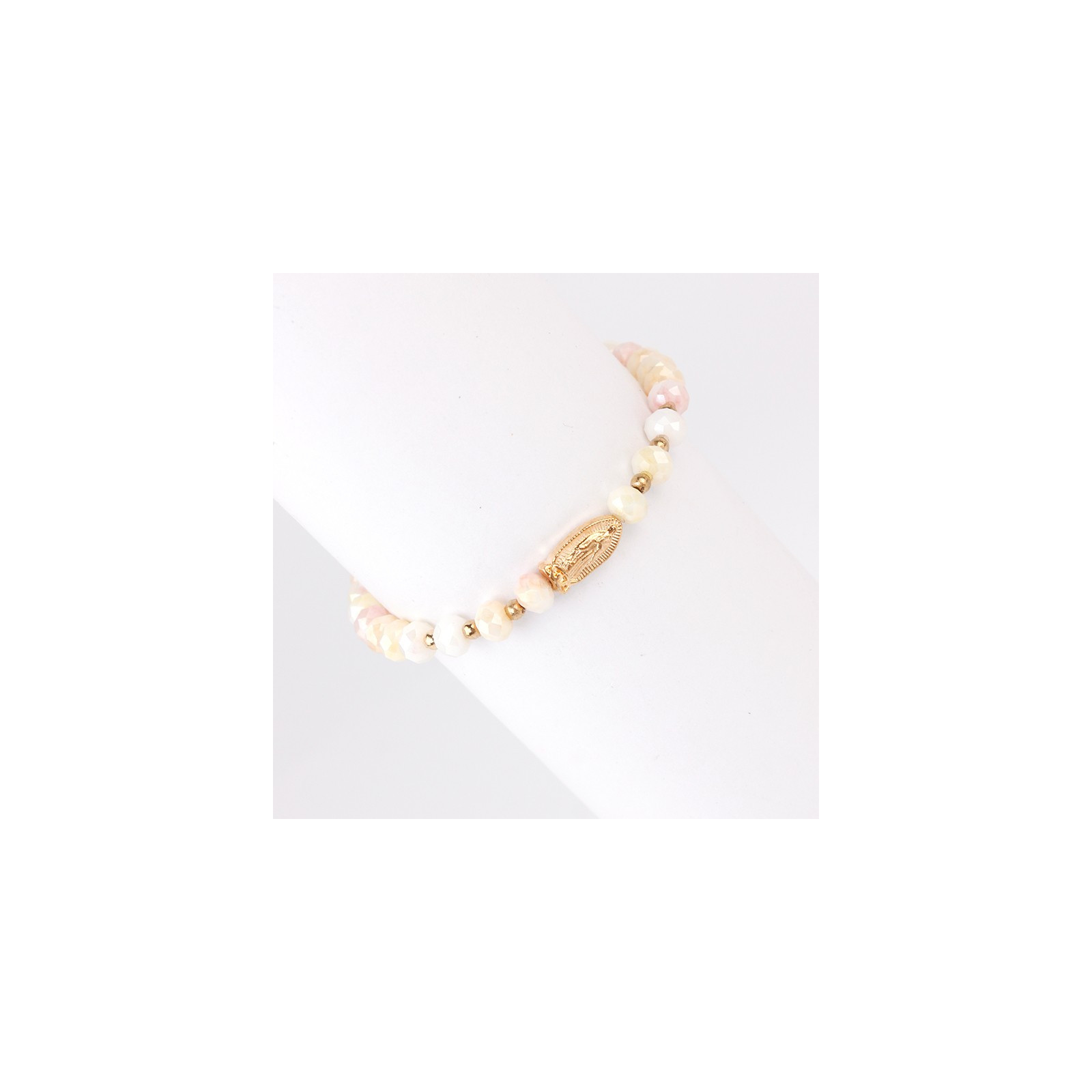 Pulsera elástica de rocas de cristal con dijes exclusivos de distintas formas y tamaños dorados.