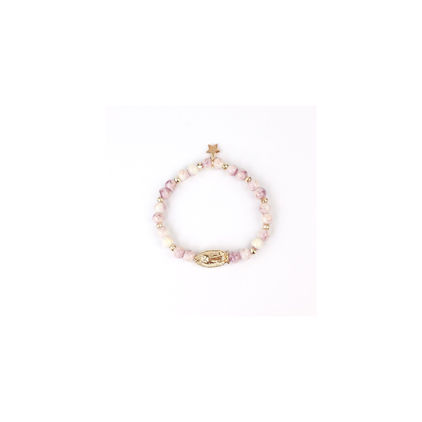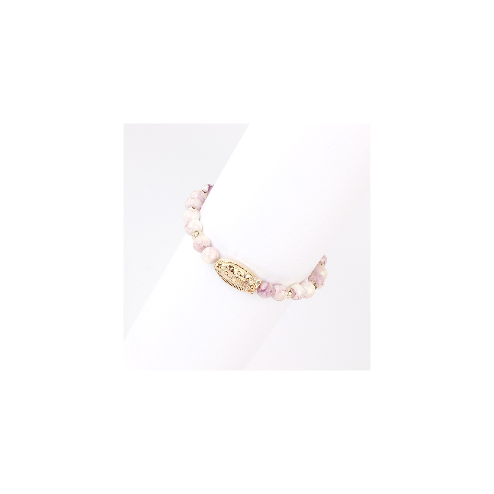 Pulsera elástica de piezas diferenciadas de vidrio con dijes exclusivos dorados.