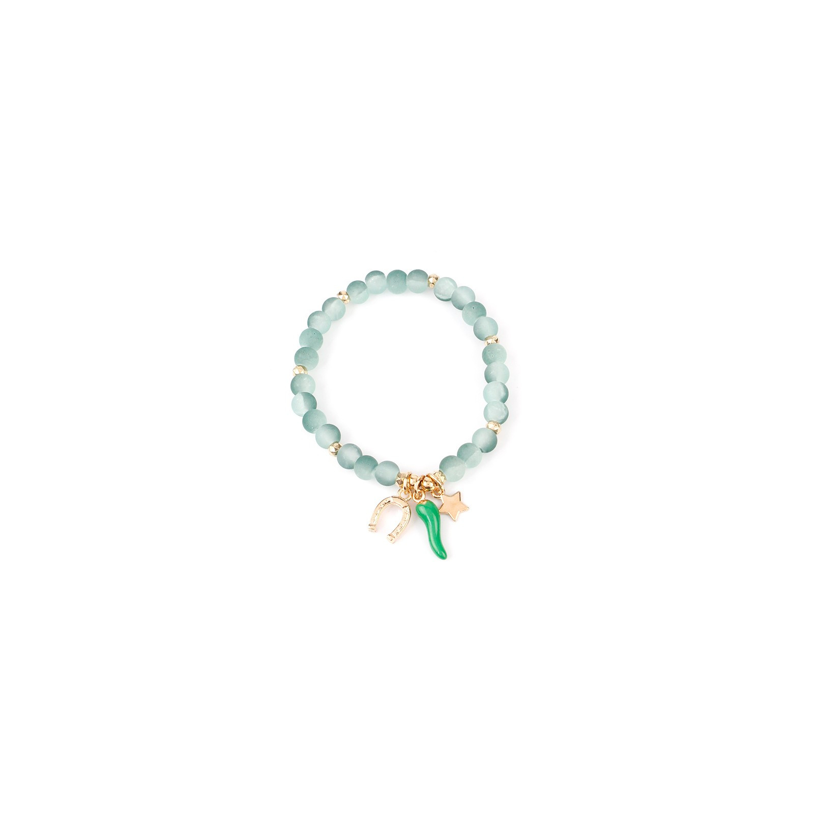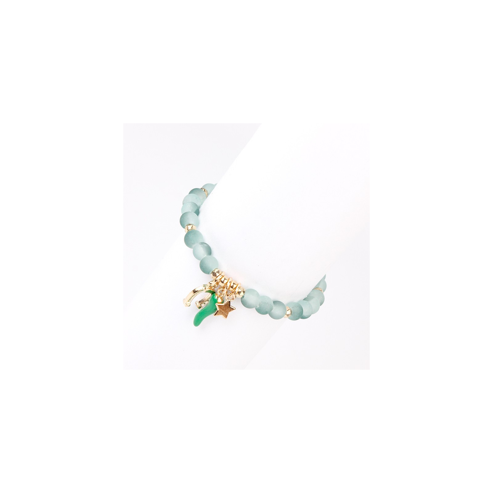 Pulsera elástica de piezas diferenciadas de vidrio con dije exclusivo pintado a mano.