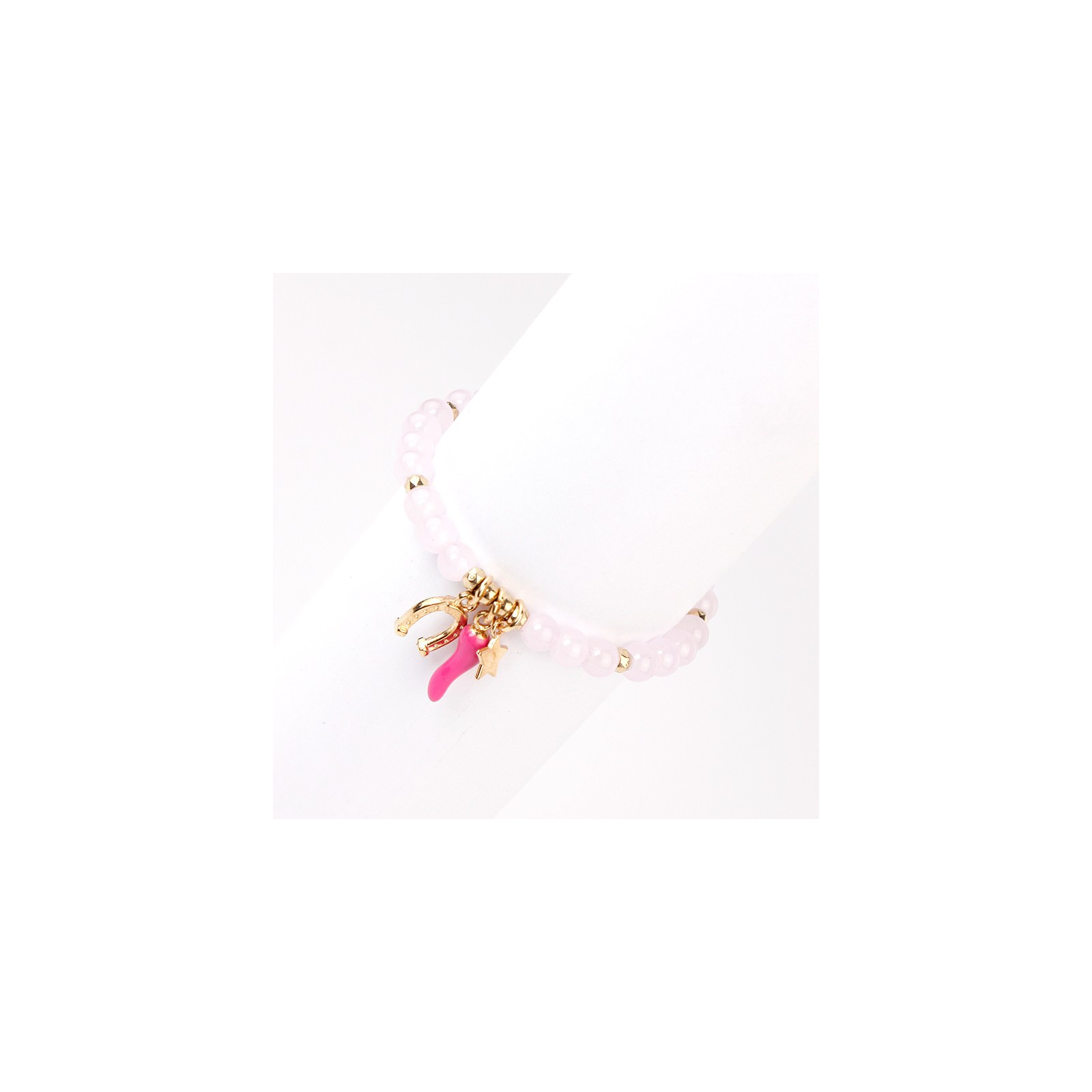 Pulsera elástica de piezas diferenciadas de vidrio con dije exclusivo pintado a mano.