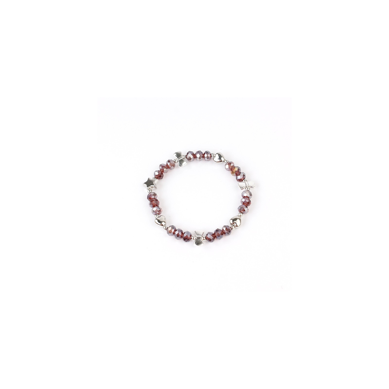 Pulsera elástica de rocas de cristal con múltiples dijes pasantes exclusivos níquel.