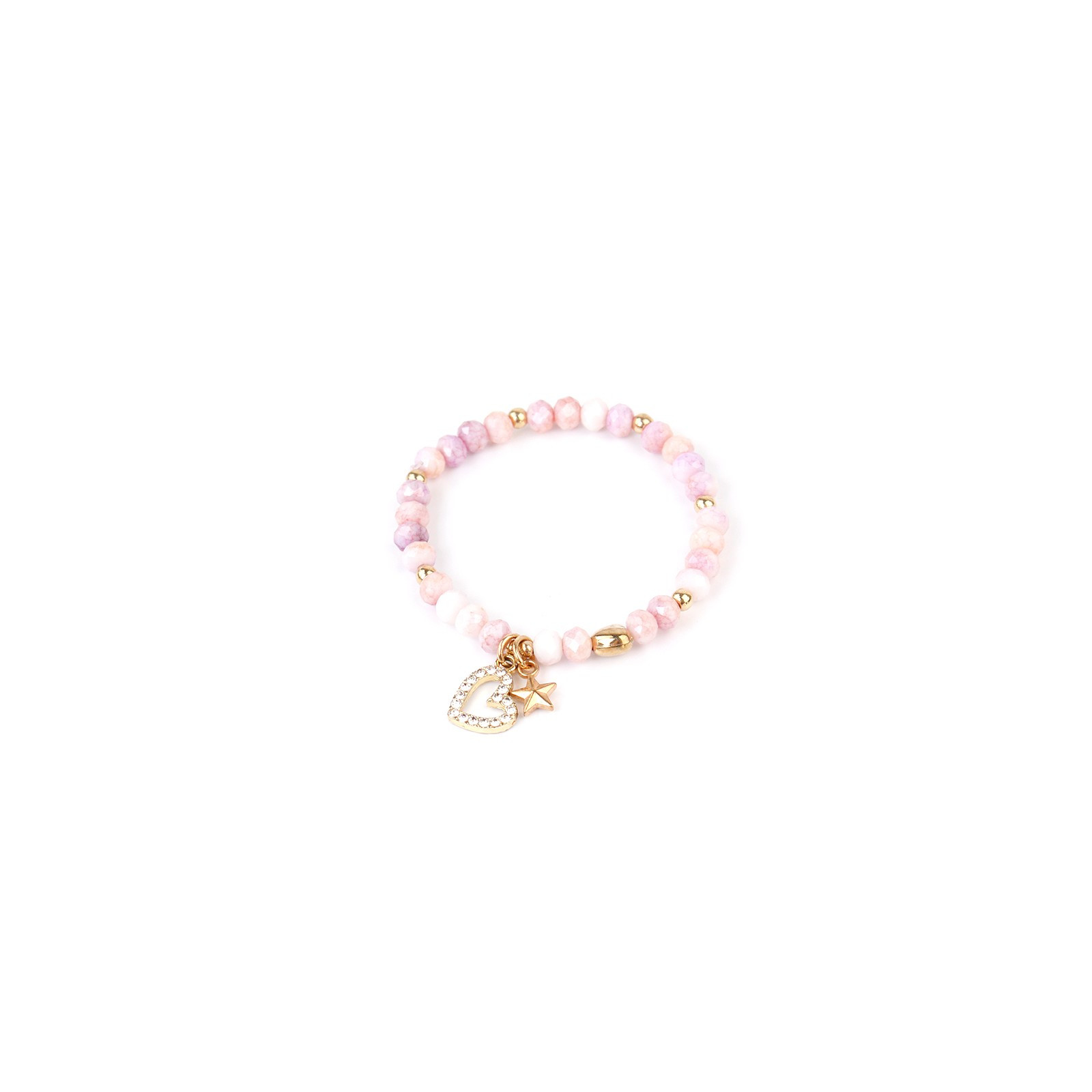 Pulsera elástica de rocas de cristal con dije de strass exclusivo con forma de corazón dorado.