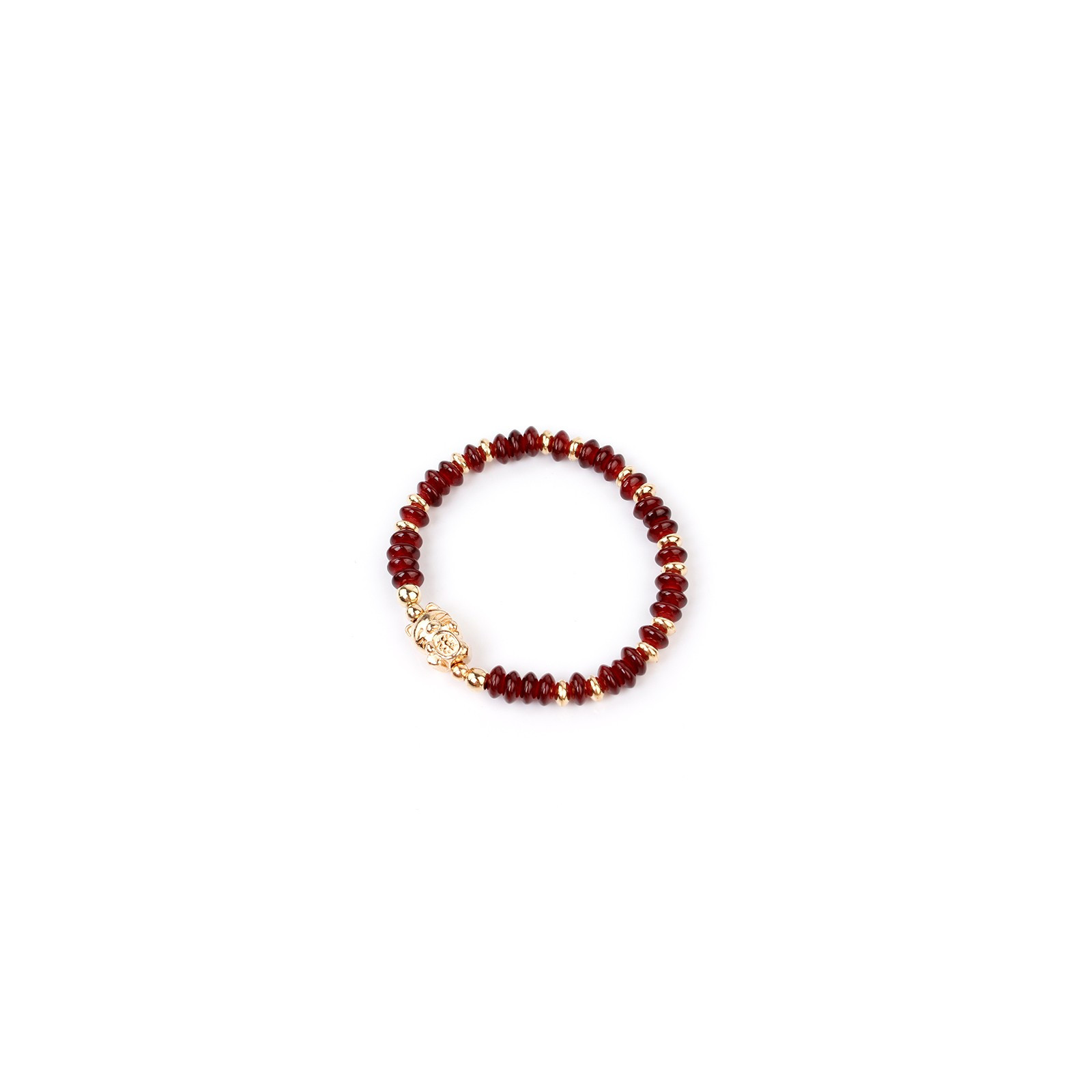 Pulsera elástica de discos de cristal con dije exclusivo pasante con forma de gato de la fortuna.