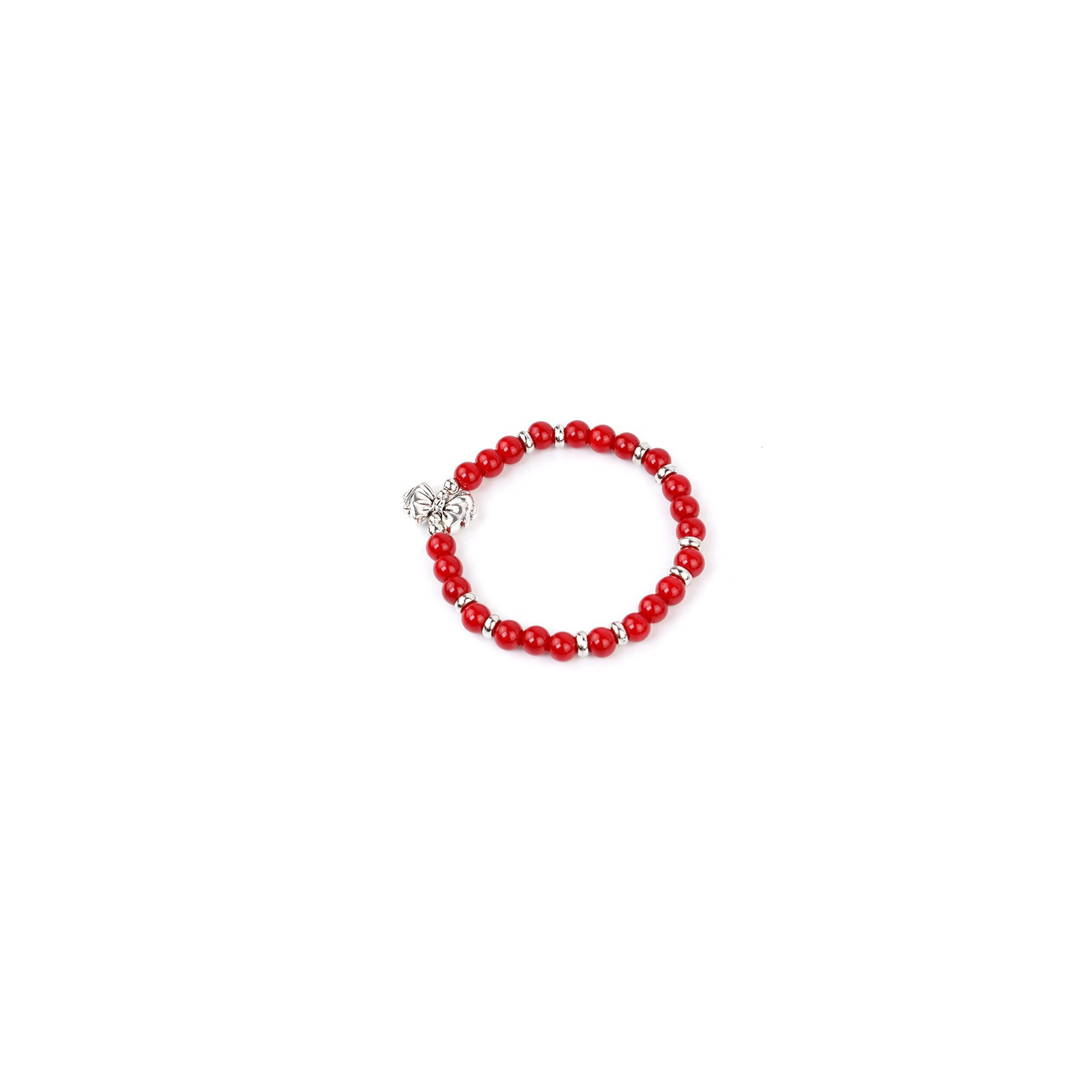 Pulsera elástica de piezas de vidrio con dije exclusivo níquel en forma de moño.