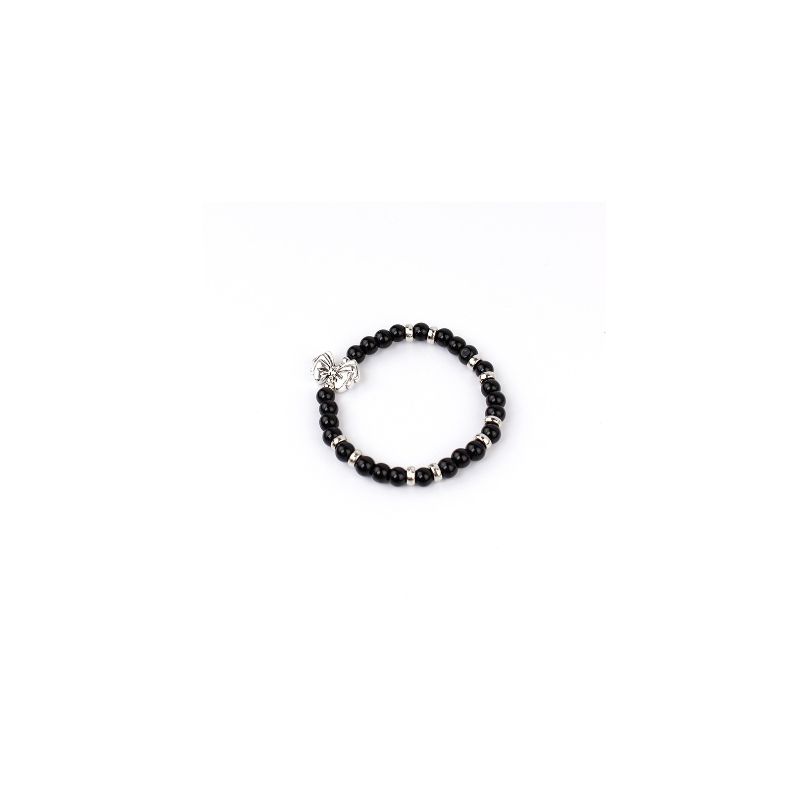 Pulsera elástica de piezas de vidrio con dije exclusivo níquel en forma de moño.
