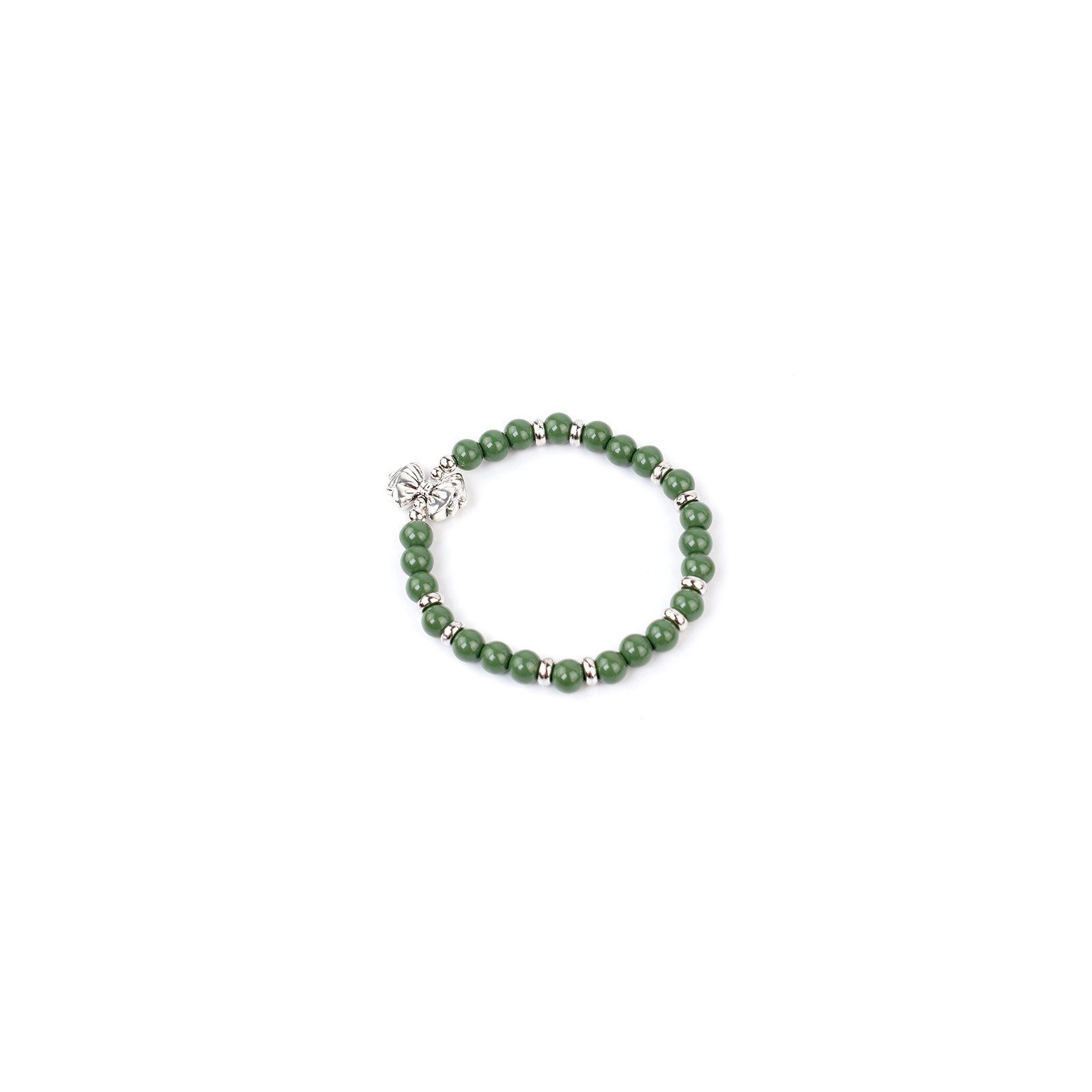 Pulsera elástica de piezas de vidrio con dije exclusivo níquel en forma de moño.
