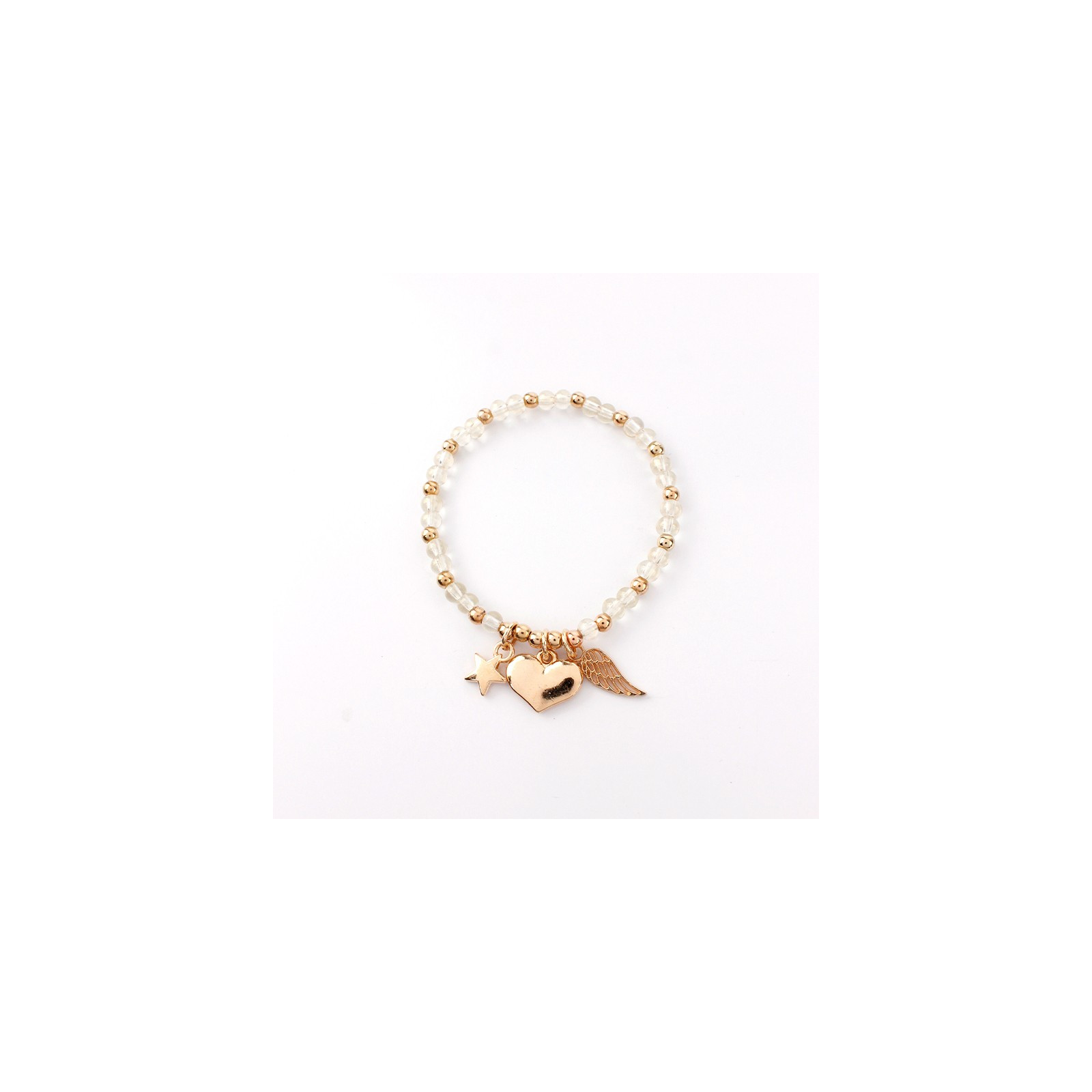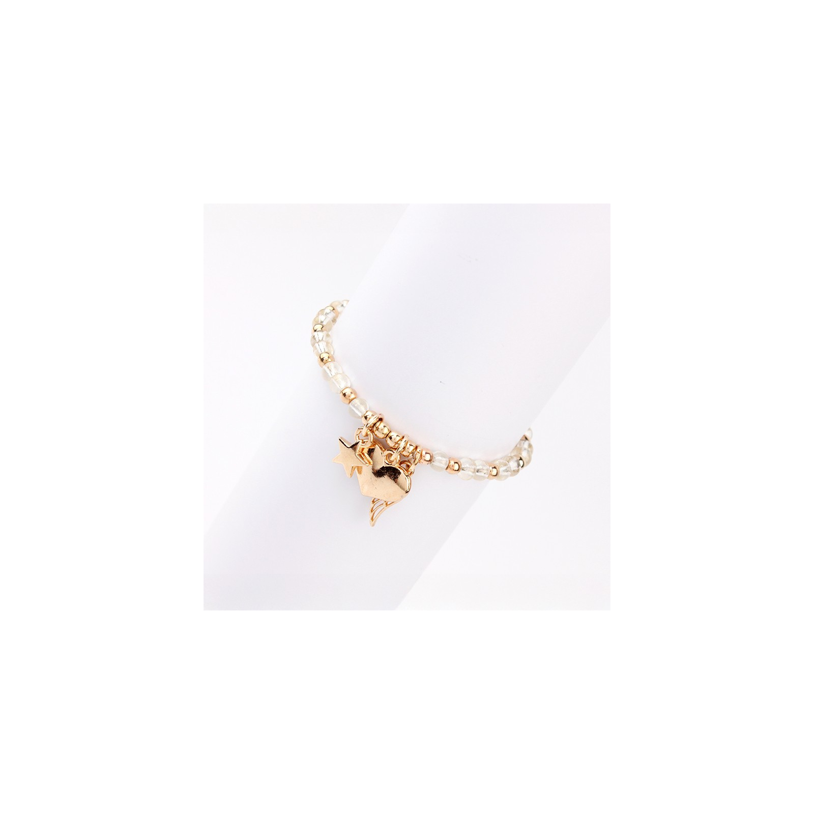 Pulsera elástica de piezas de vidrio con dijes exclusivos dorados.