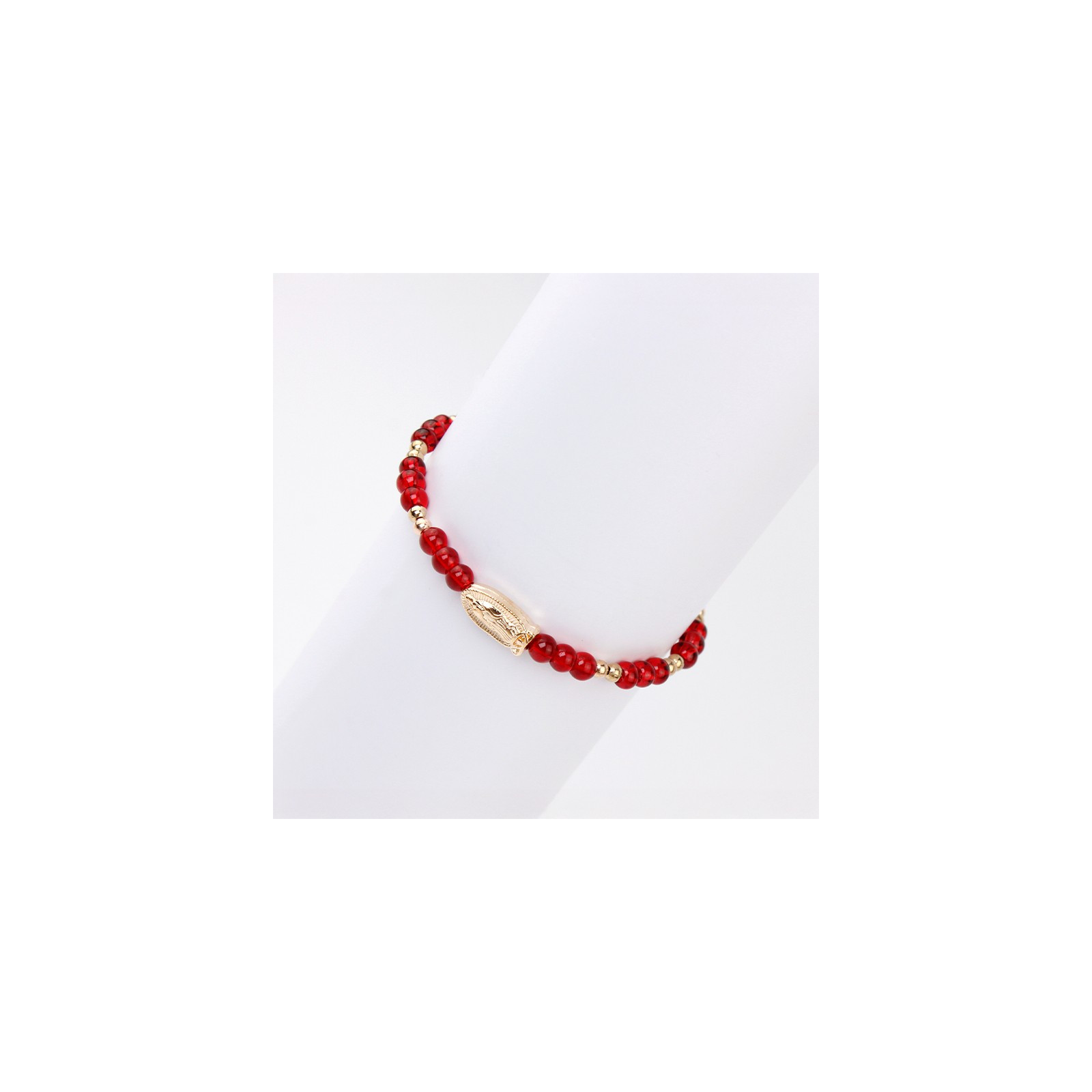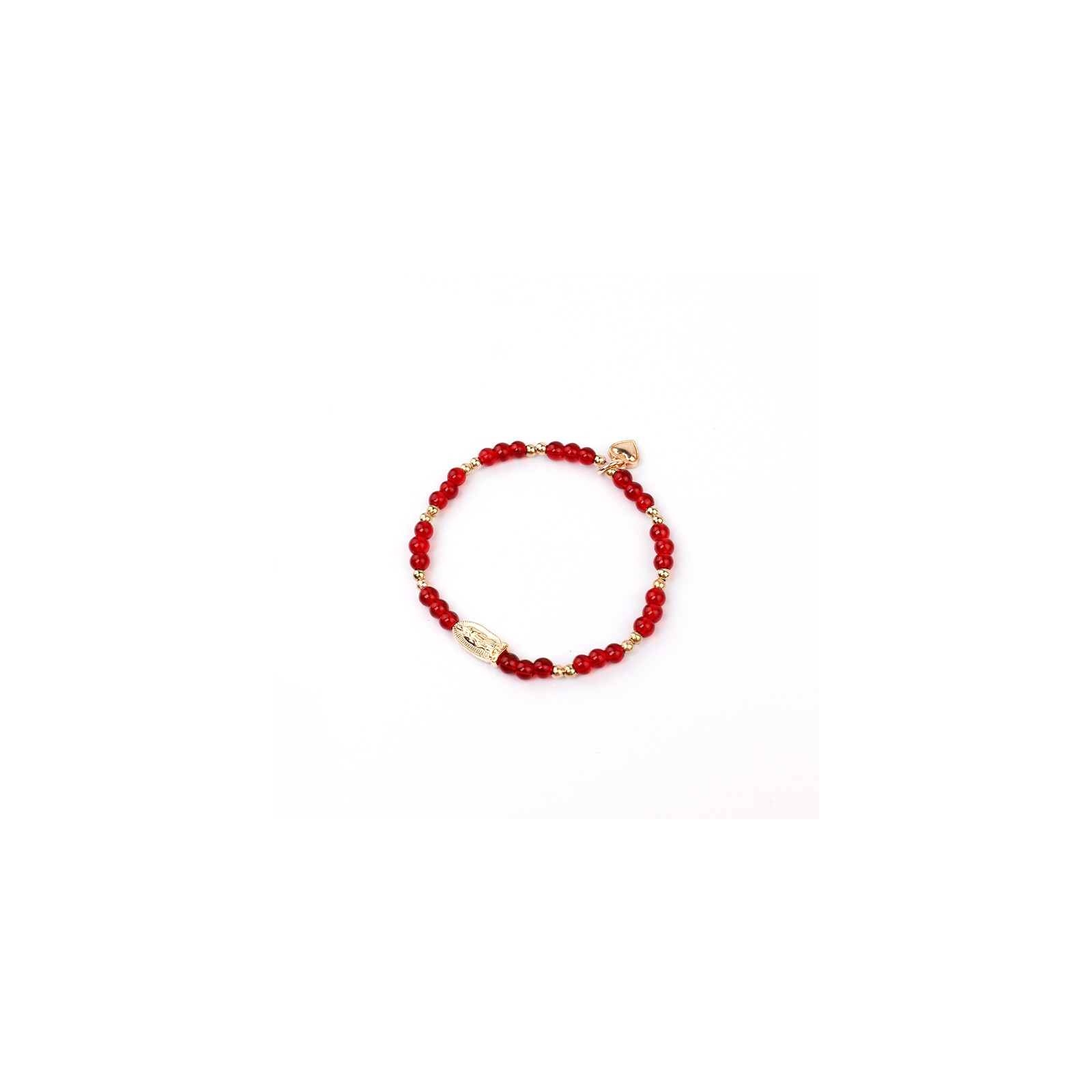 Pulsera elástica de piezas de vidrio con dijes exclusivos dorados.