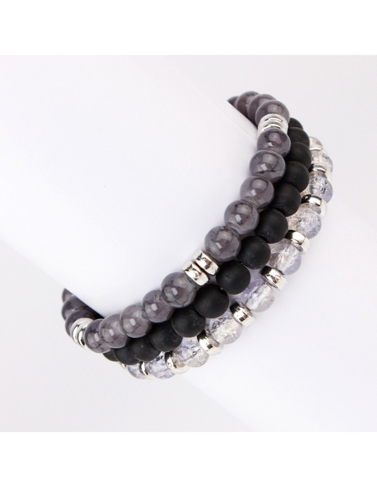 Set de tres pulseras elásticas de piezas de vidrio.