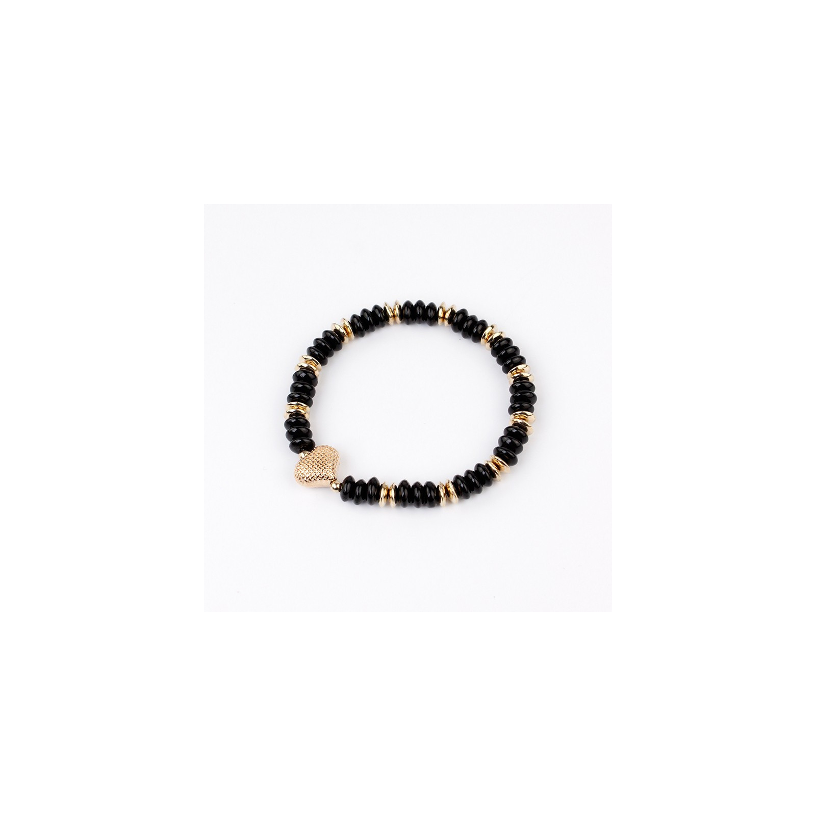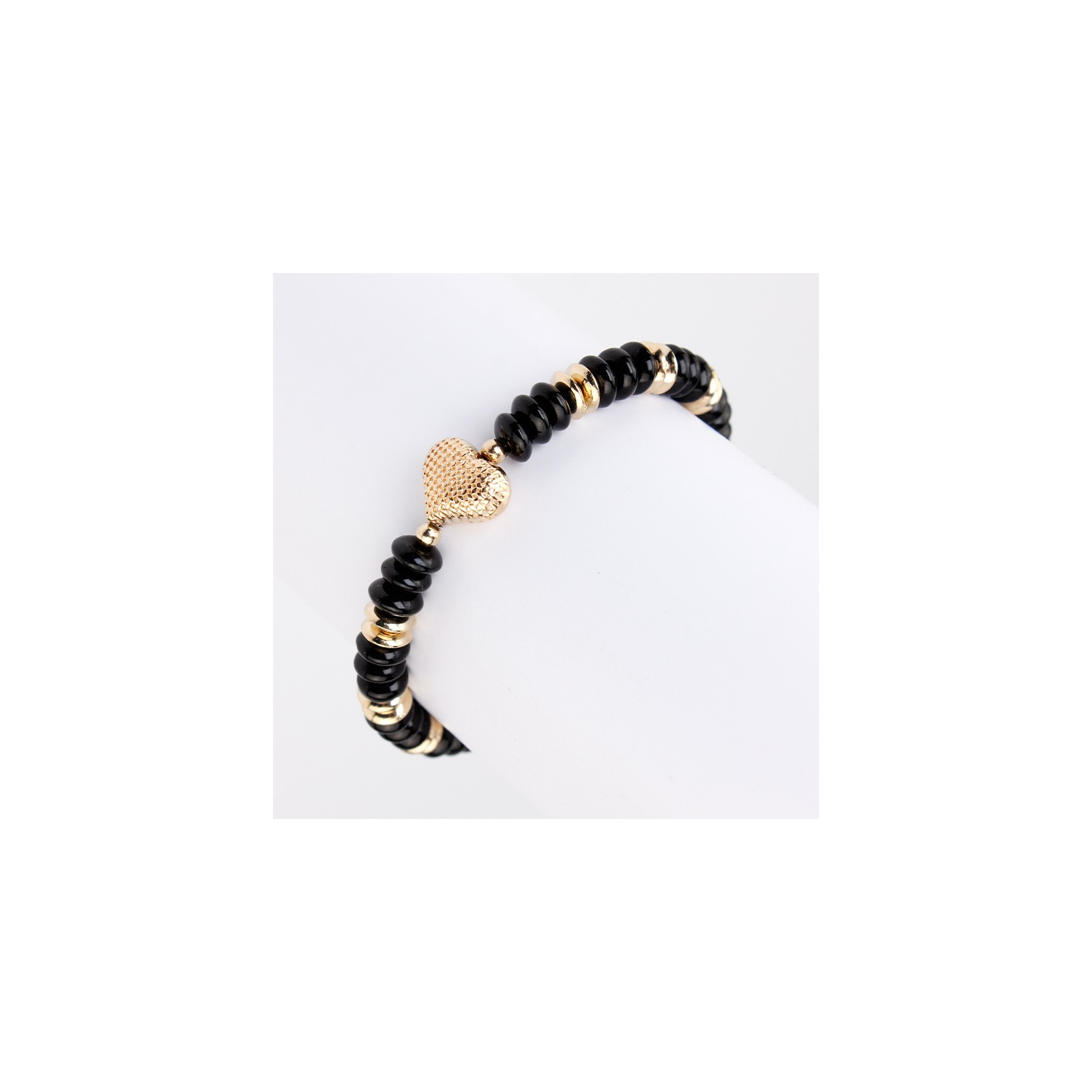 Pulsera elástica de piezas de vidrio exclusivas, piezas pasantes de CCB y dije exclusivo con forma de corazón.