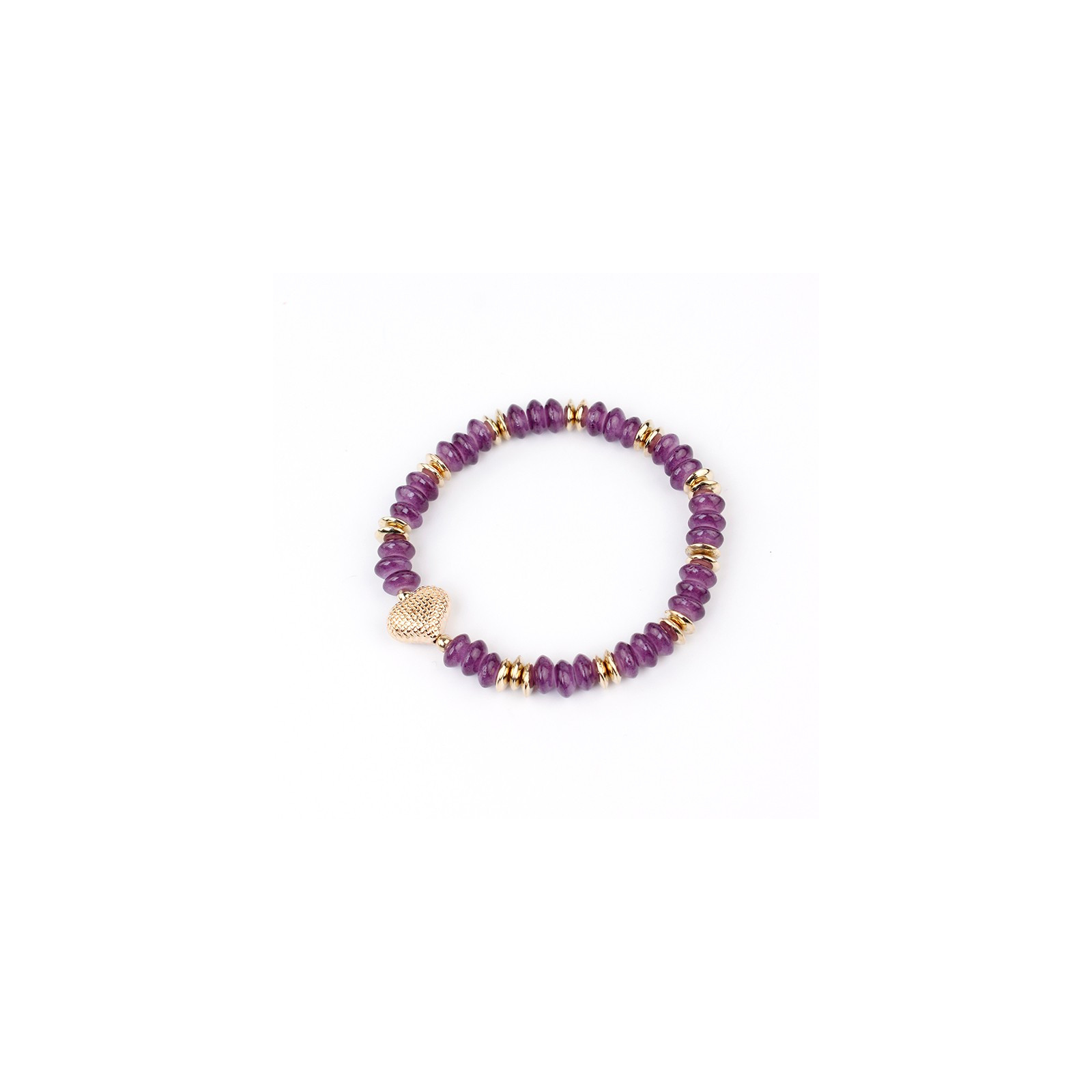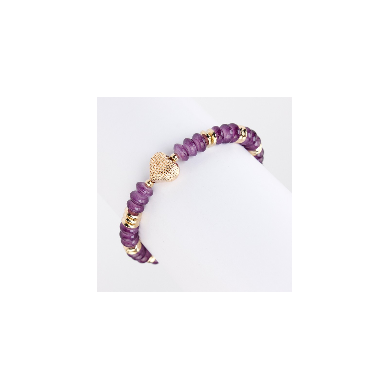 Pulsera elástica de piezas de vidrio exclusivas, piezas pasantes de CCB y dije exclusivo con forma de corazón.