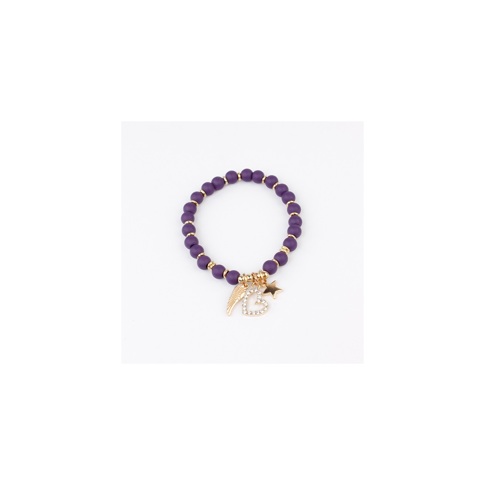 Pulsera elástica de piezas de vidrio especiales  con dijes exclusivos y de strass dorado.