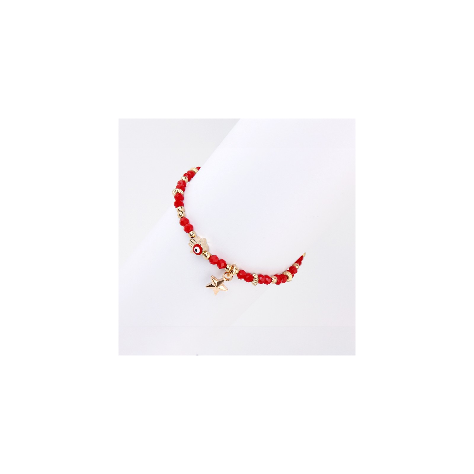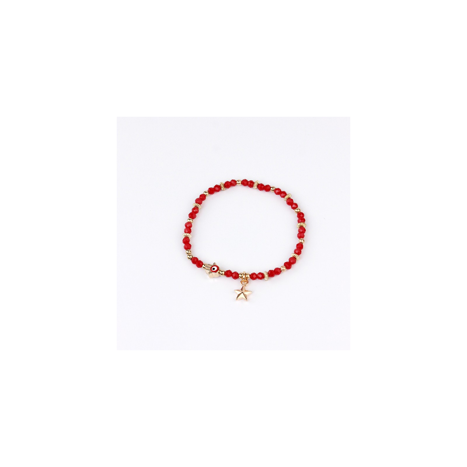 Pulsera elástica de rocas de cristal con dijes exclusivos pintados a mano dorados.