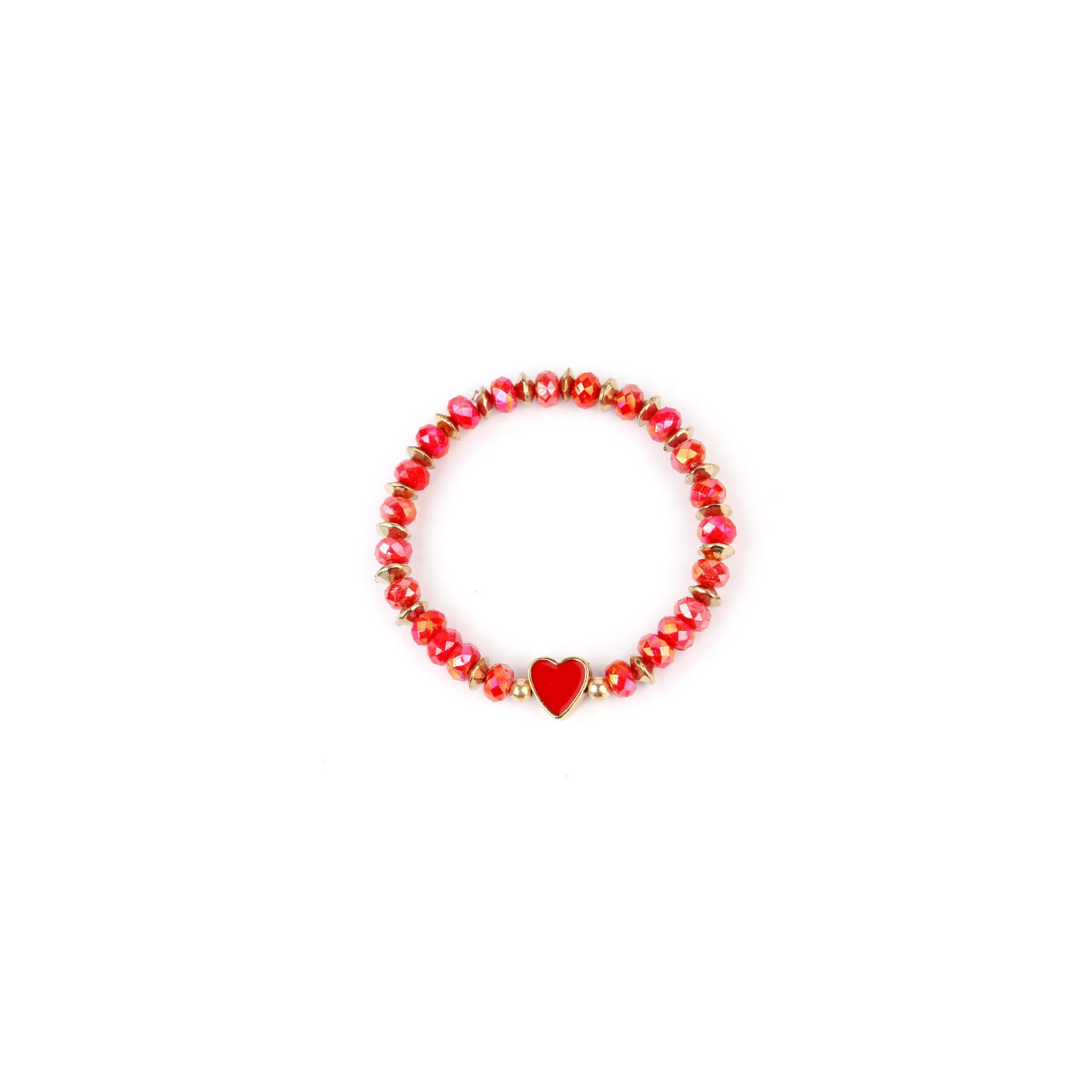 Pulsera elástica de piezas simil roca de cristal, piezas pasantes de CCB y dije pintado a mano con forma de corazón.