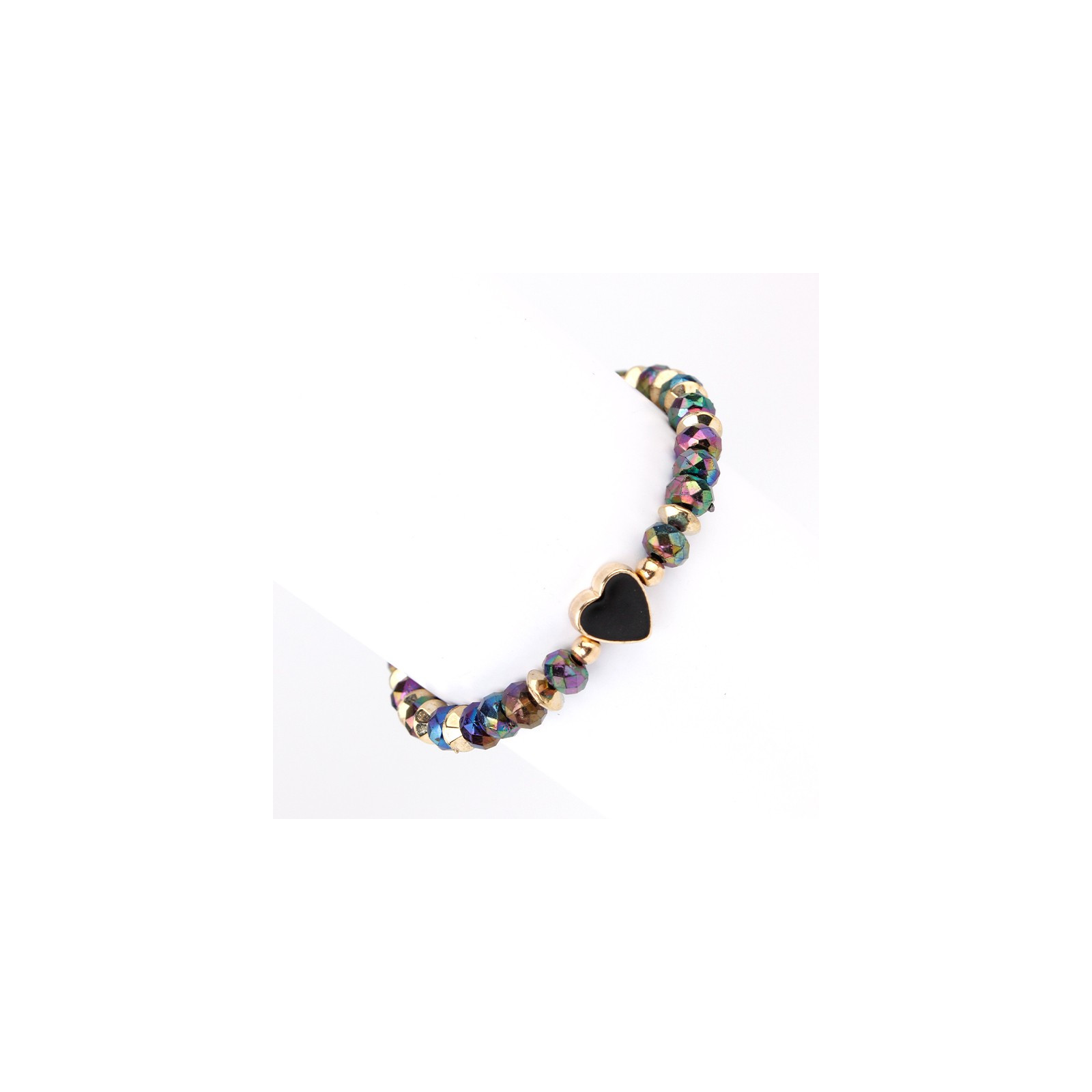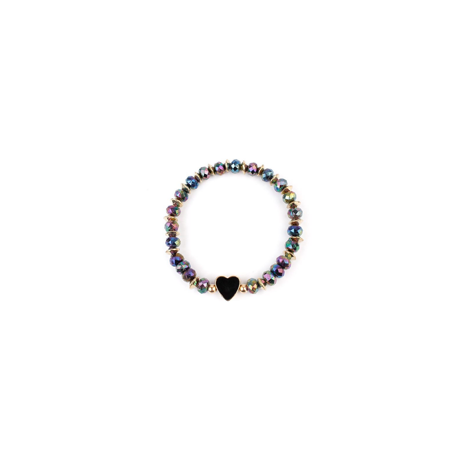Pulsera elástica de piezas simil roca de cristal, piezas pasantes de CCB y dije pintado a mano con forma de corazón.