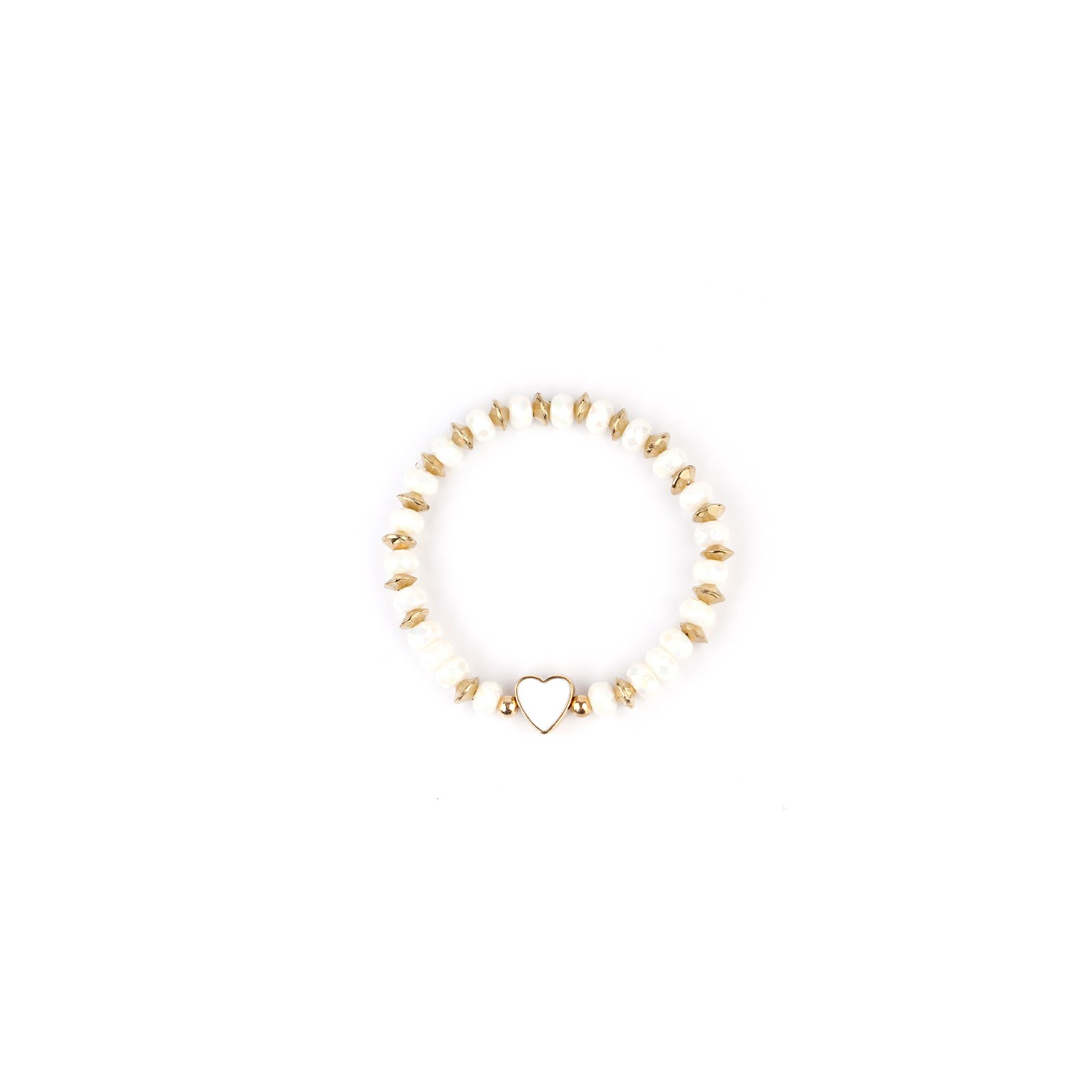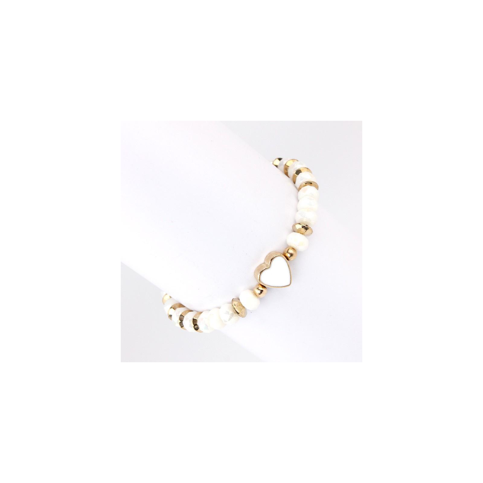Pulsera elástica de piezas simil roca de cristal, piezas pasantes de CCB y dije pintado a mano con forma de corazón.
