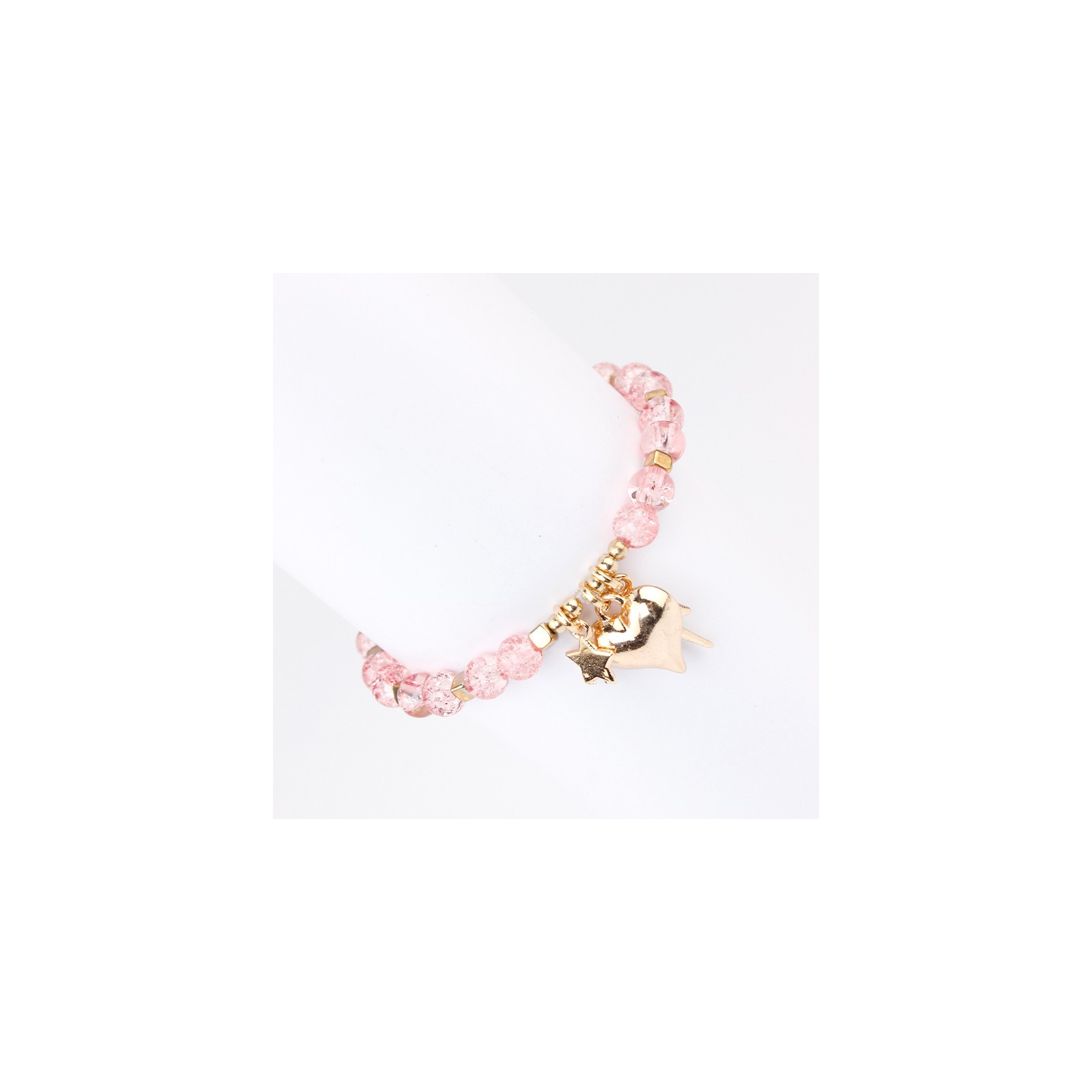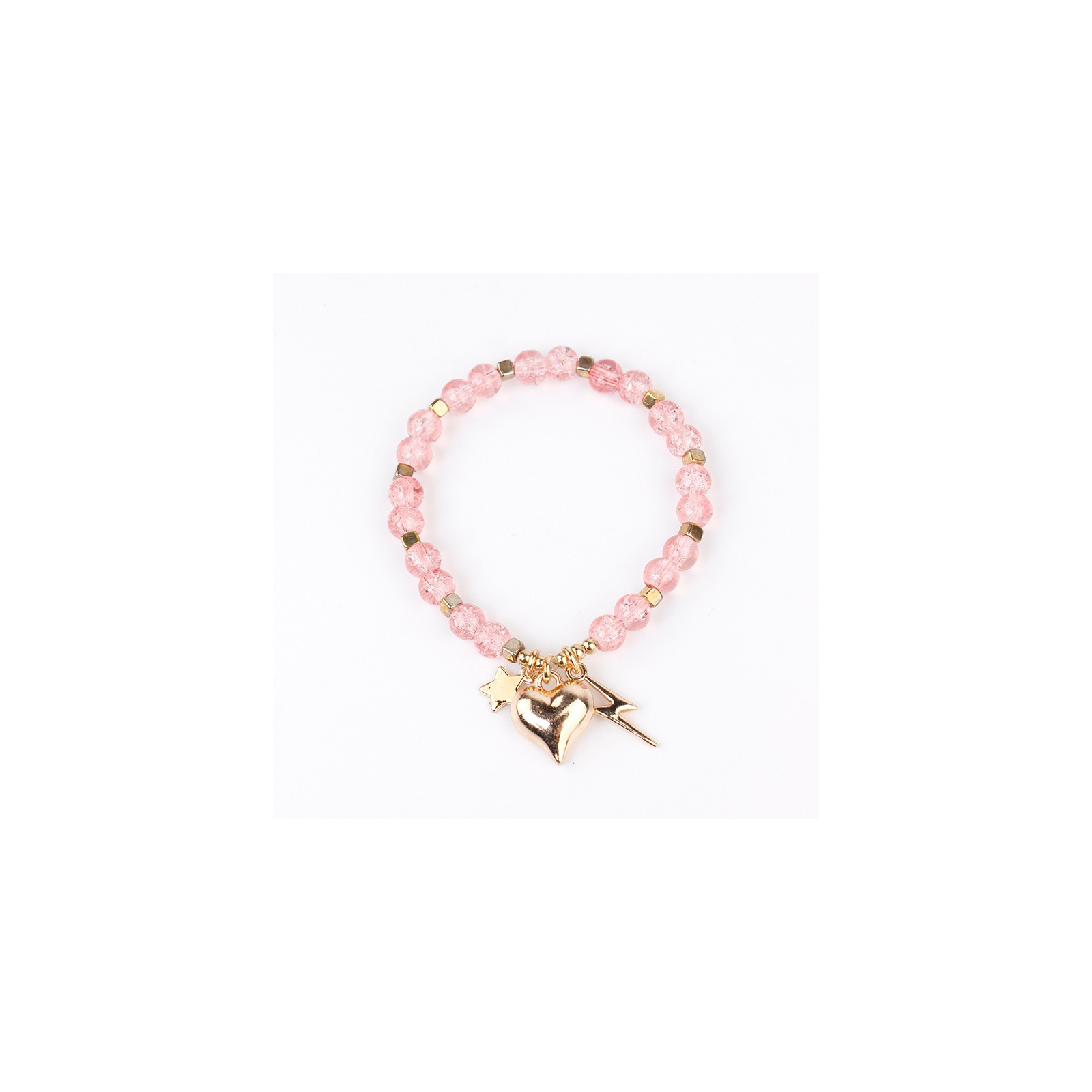 Pulsera elástica elaborada con piezas exclusivas de vidrio, piezas pasantes de CCB y dijes exclusivos de distintas formas y tamaños.