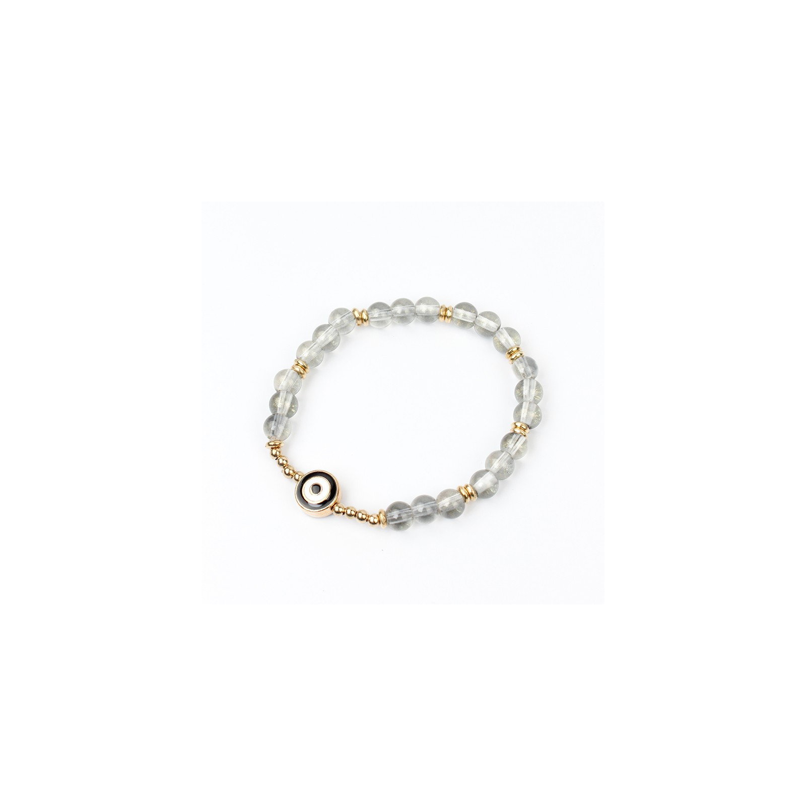 Pulsera elástica de piezas de vidrio, con ojo exclusivo de pintado a mano dorado.