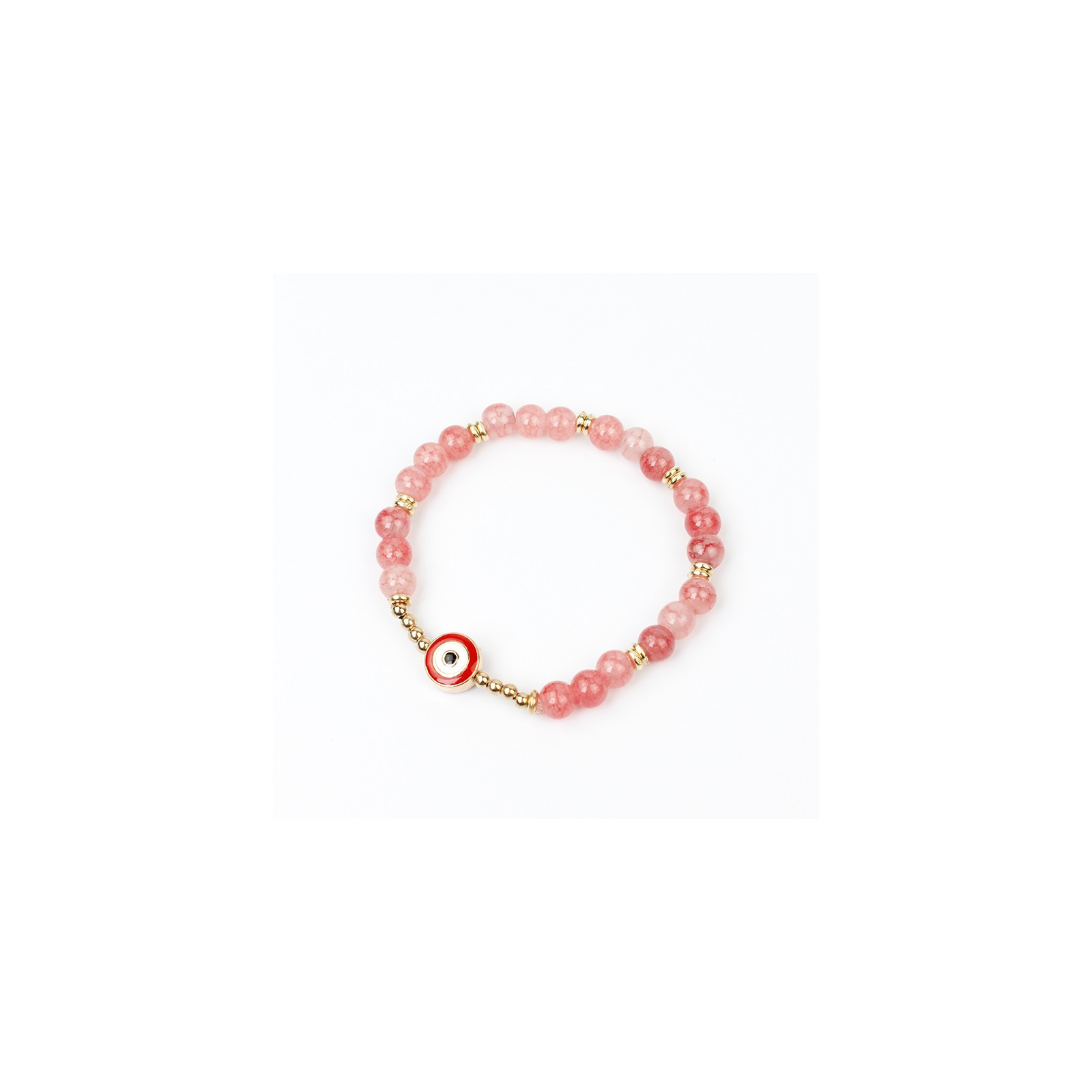 Pulsera elástica de piezas de vidrio, con ojo exclusivo de pintado a mano dorado.