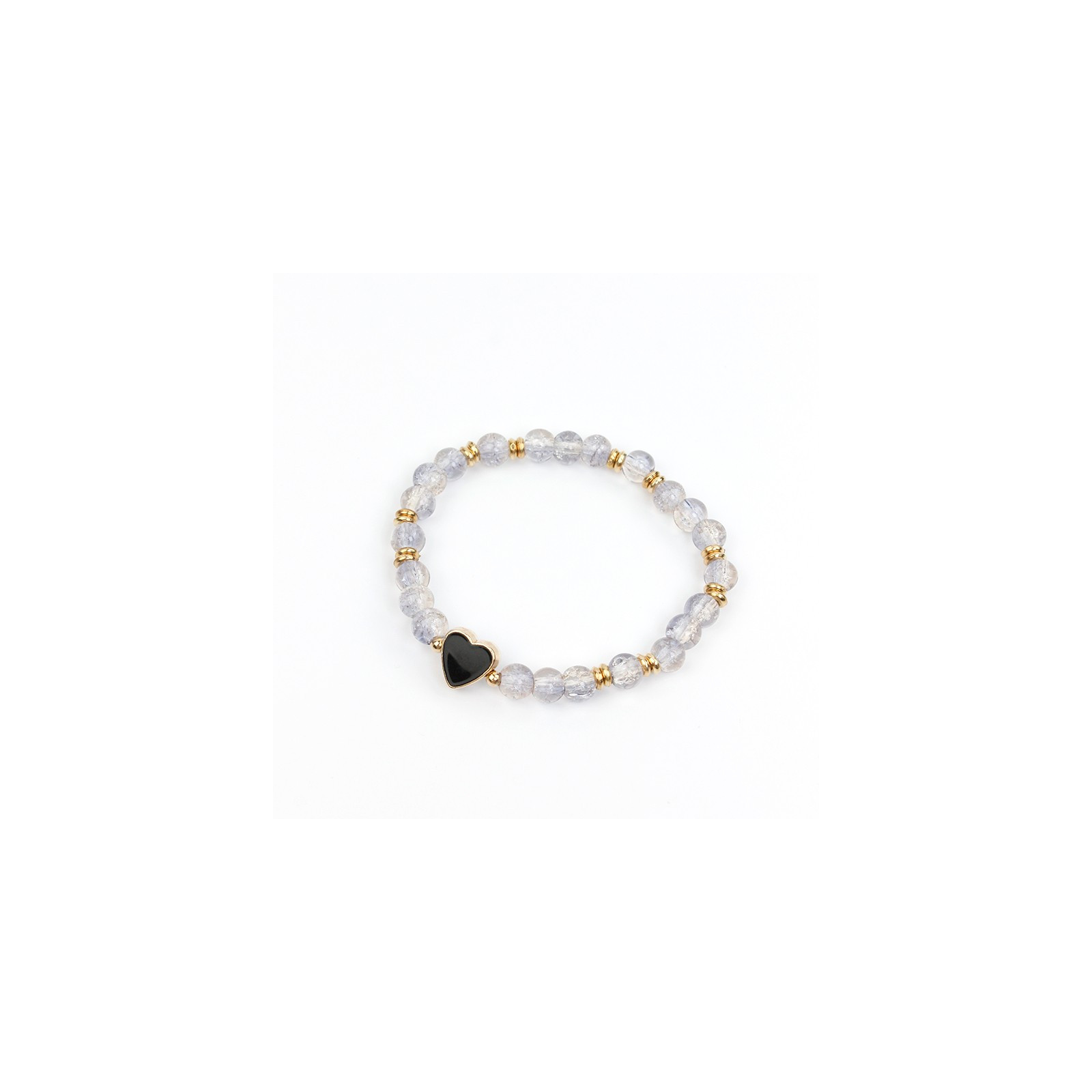 Pulsera elástica de piezas de vidrio con dije exclusivo pintado a mano dorado.
