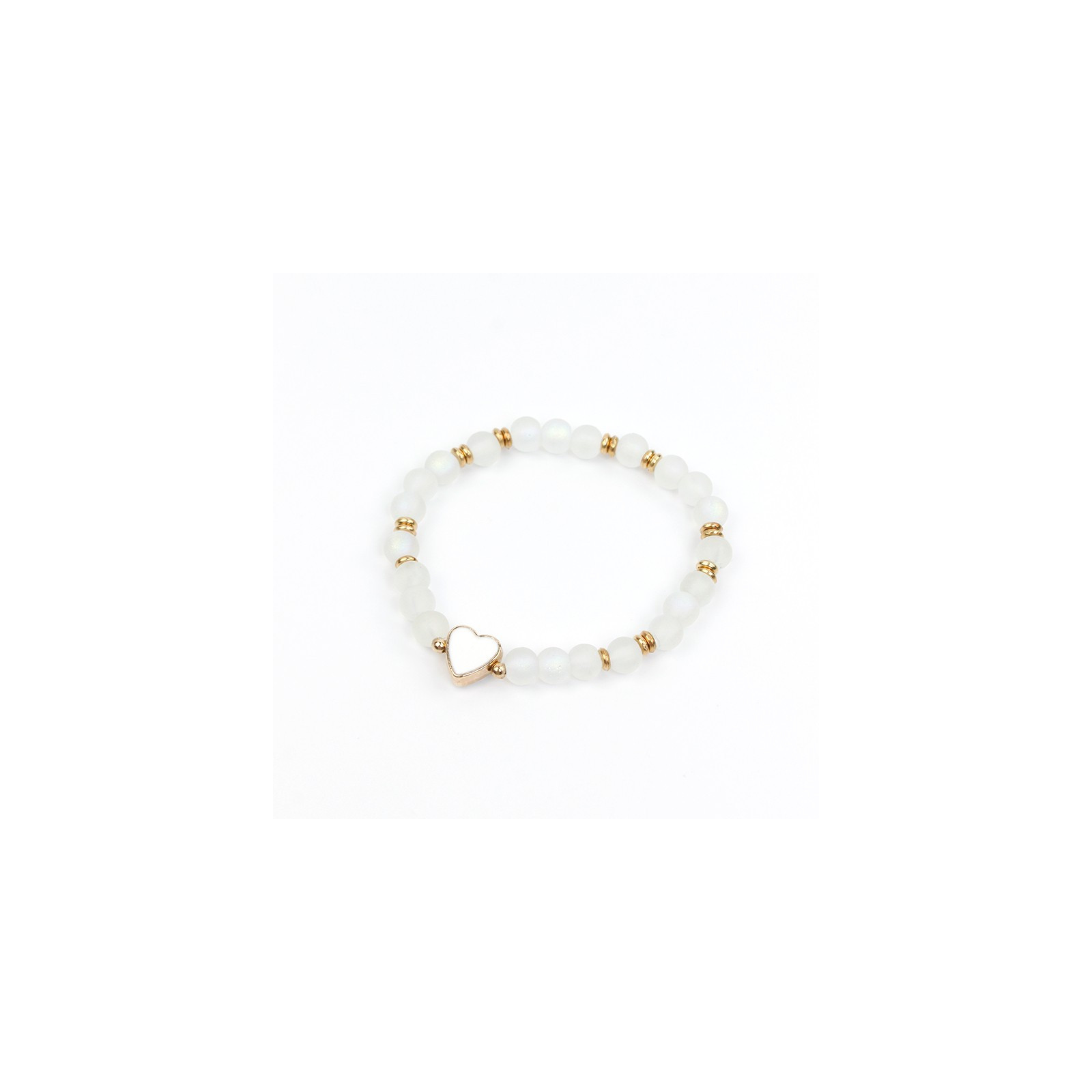 Pulsera elástica de piezas de vidrio con dije exclusivo pintado a mano dorado.