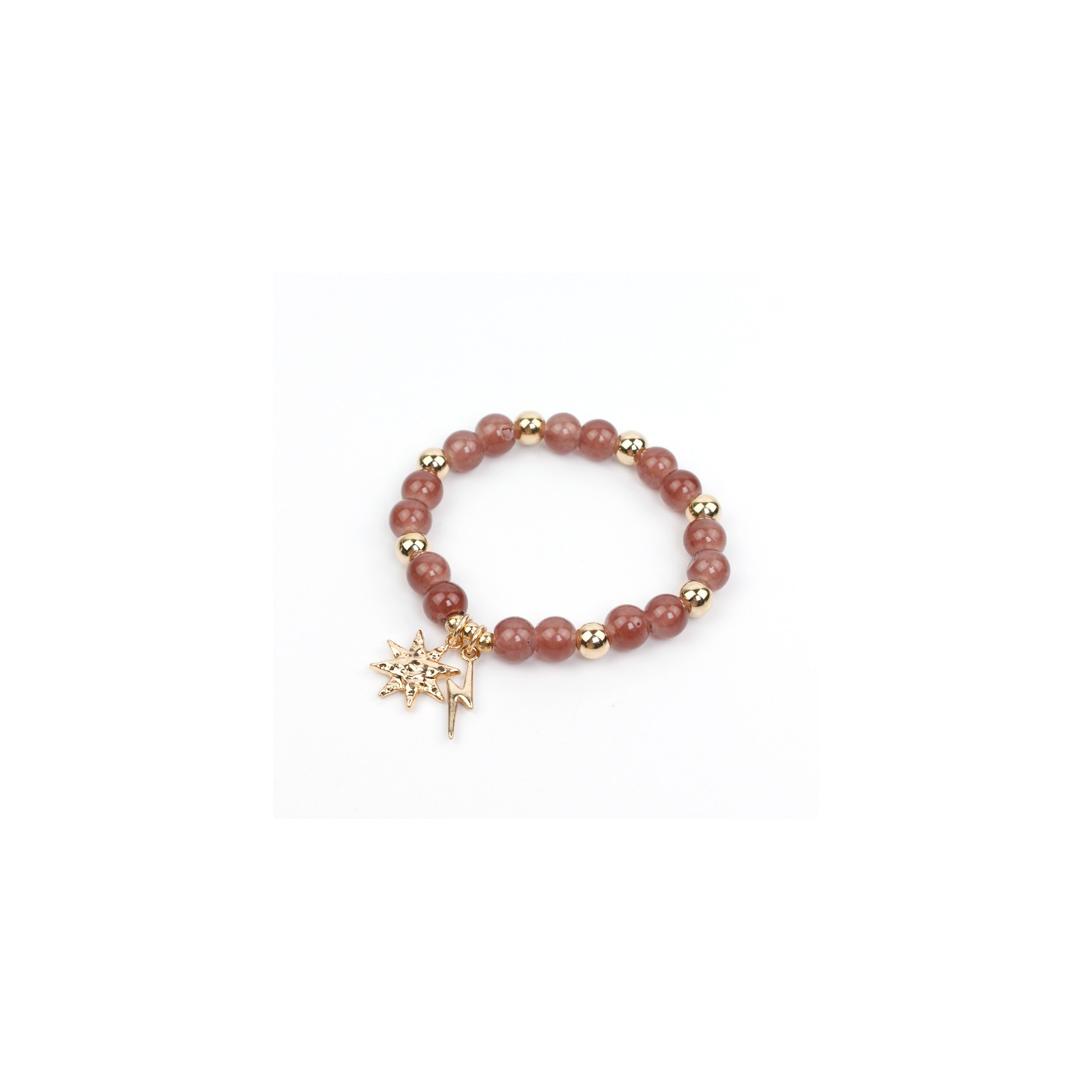 Pulsera elástica de piezas de vidrio con dijes exclusivos dorados.