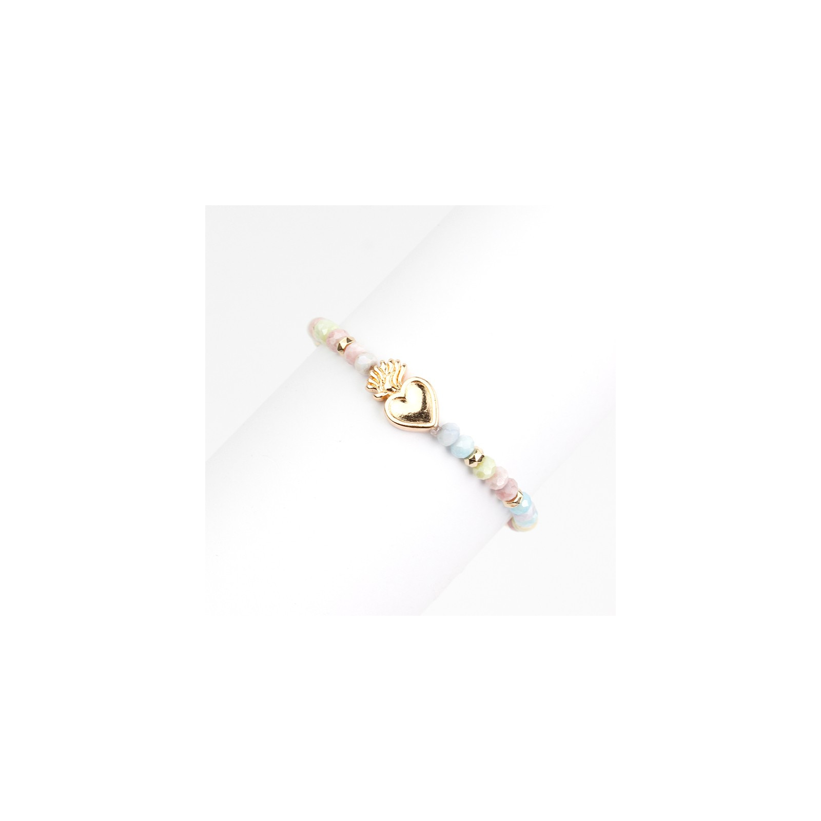 Pulsera elástica de rocas de cristal con dije exclusivo dorado.