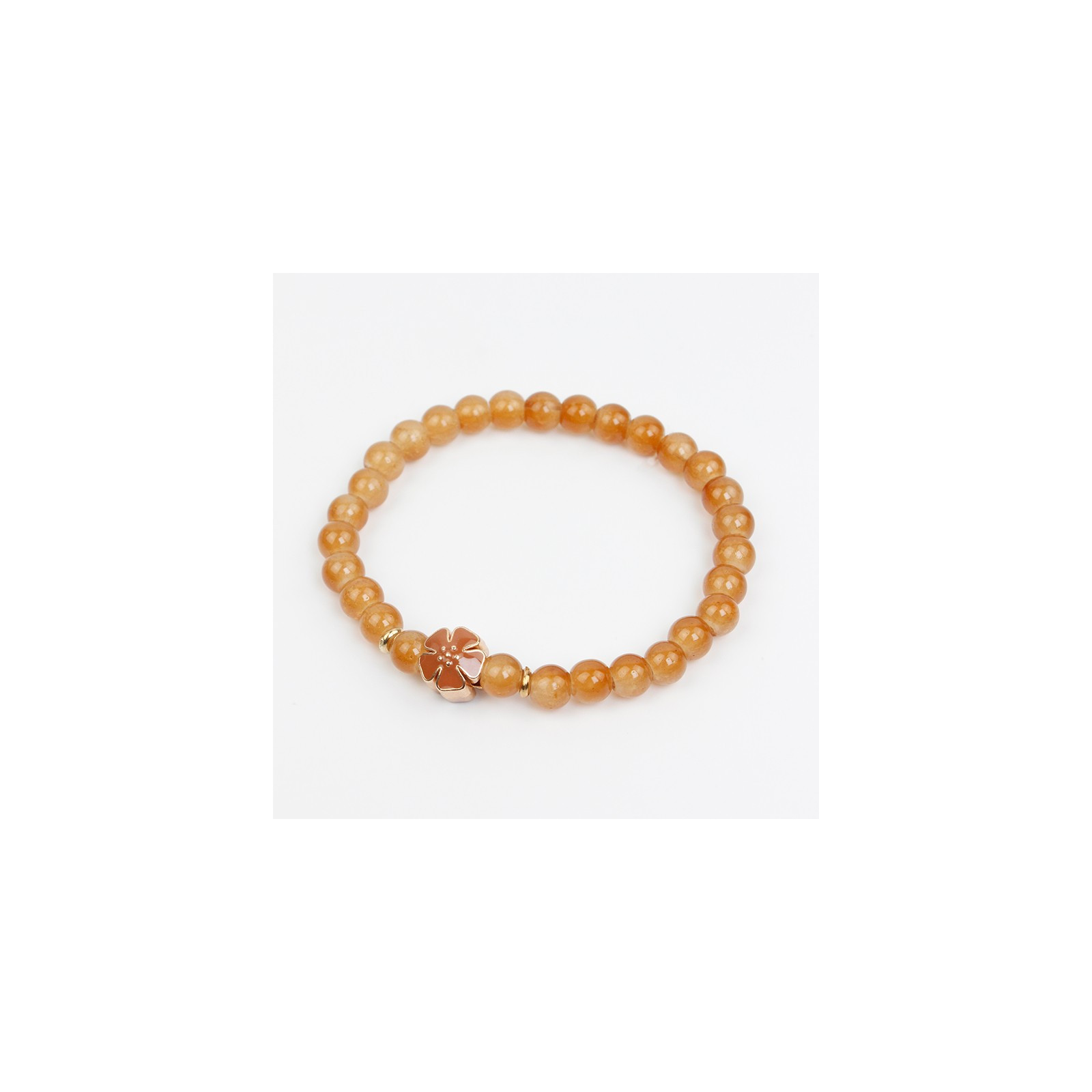 Pulsera elásticas de bolitas de vidrio diferenciadas, piezas pasantes de CCB y dije exclusivo pasante pintado a mano.
