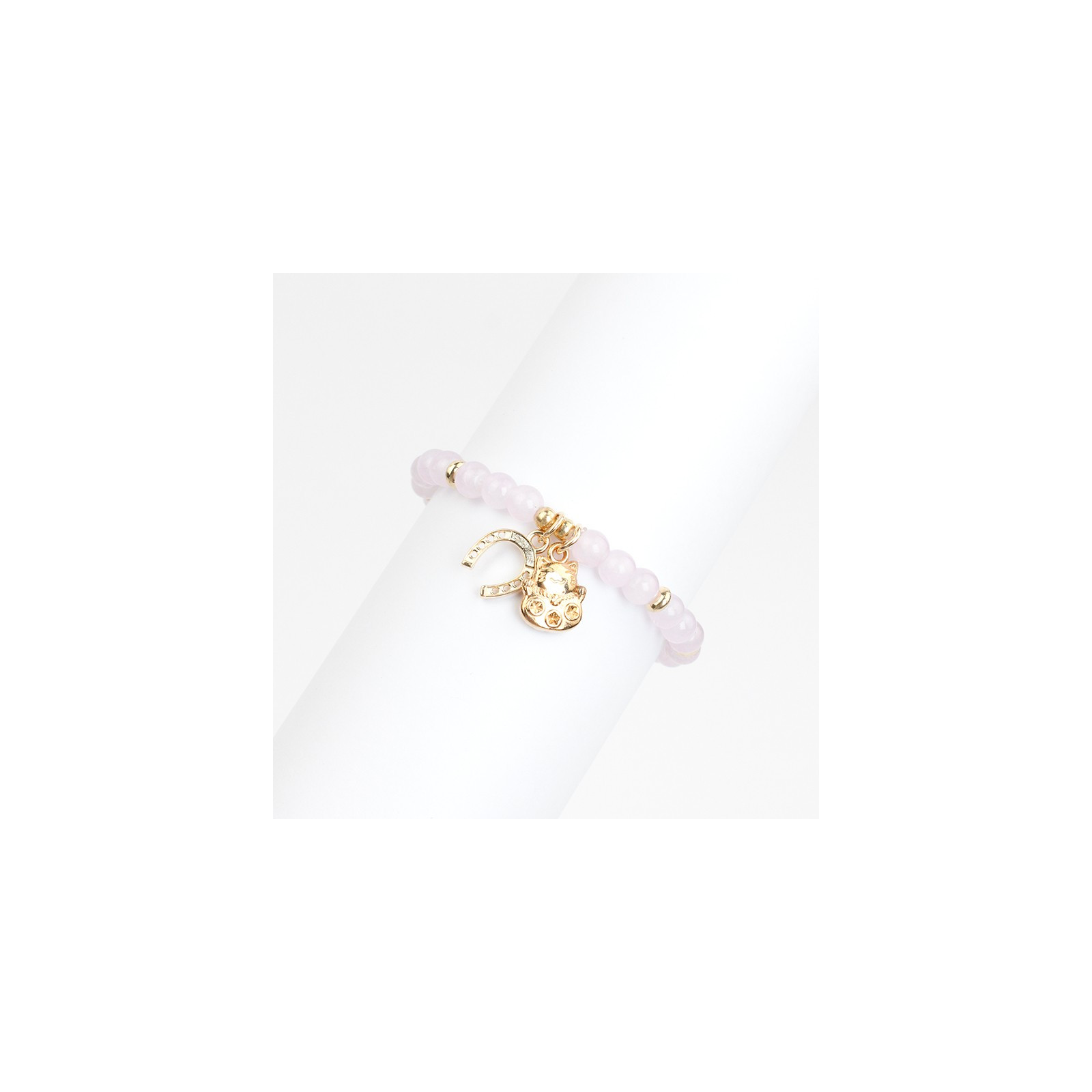 Pulsera elástica de bolitas de vidrio energéticas combinadas con piezas pasantes de CCB y dijes exclusivos.