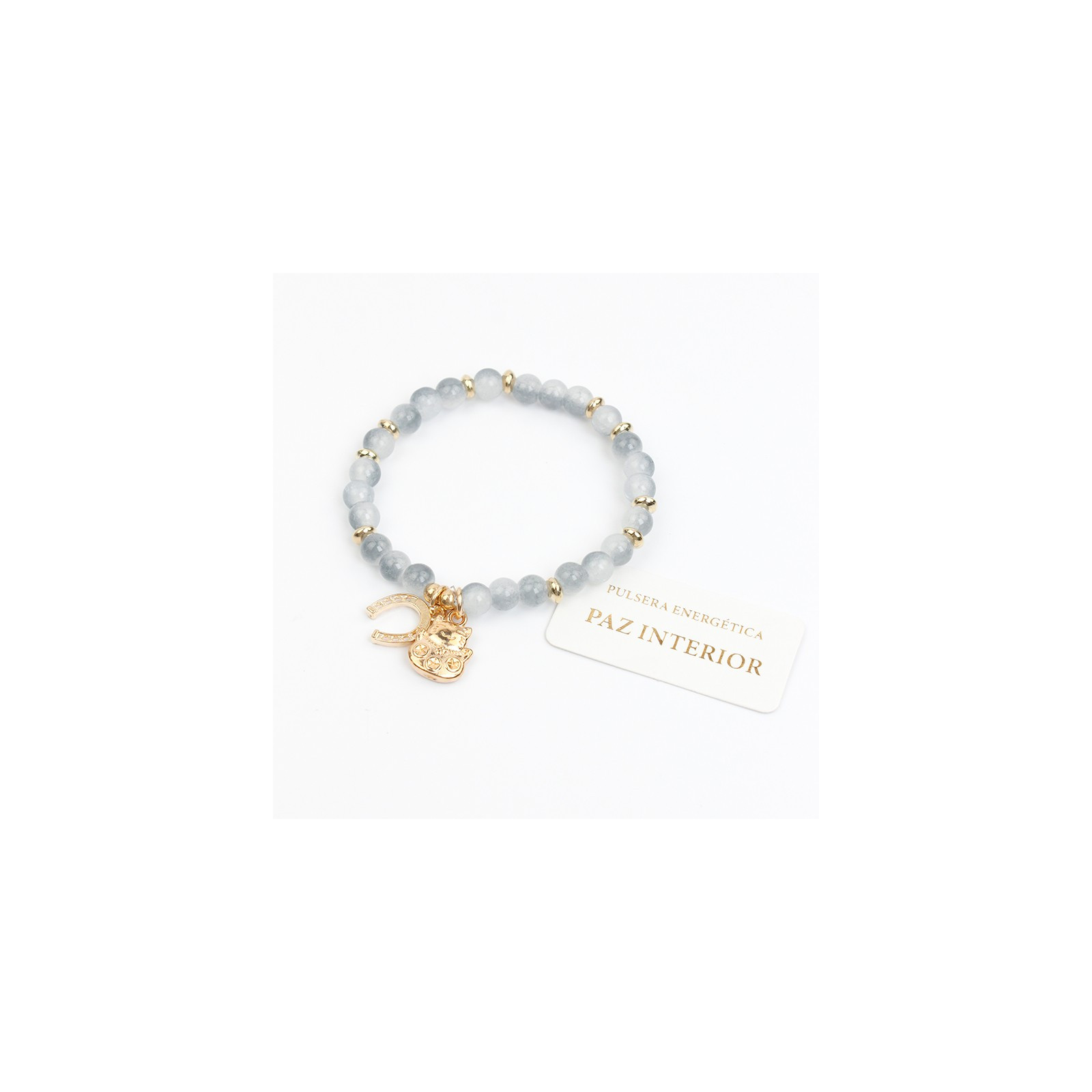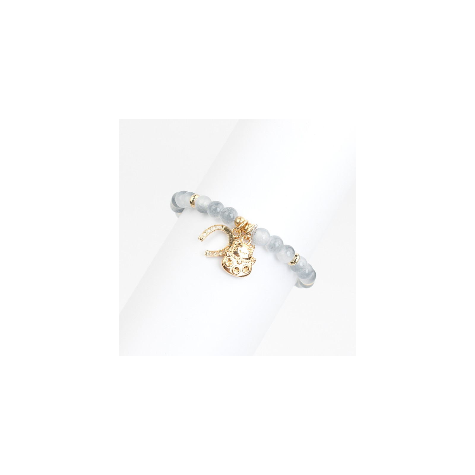 Pulsera elástica de bolitas de vidrio energéticas combinadas con piezas pasantes de CCB y dijes exclusivos.