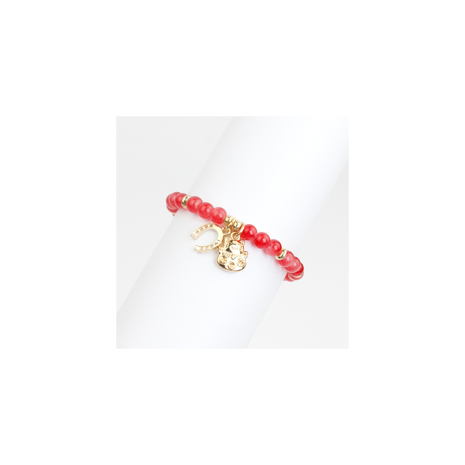 Pulsera elástica de bolitas de vidrio energéticas combinadas con piezas pasantes de CCB y dijes exclusivos.