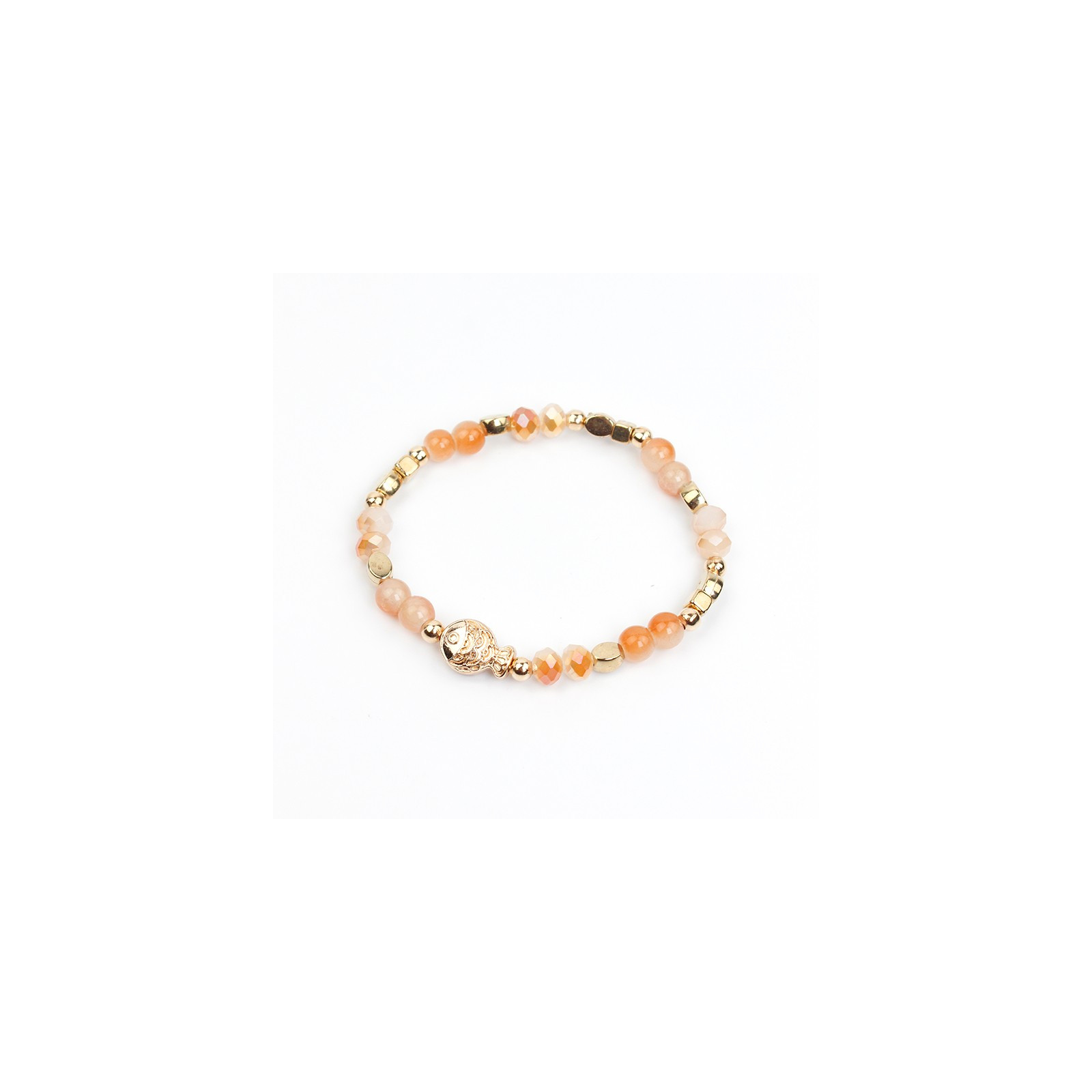 Pulsera elástica, elaborada en bolitas de vidrio diferenciadas, combinadas con ricas de cristal,piezas pasantes de CCB y dije exclusivo con forma de pez.
