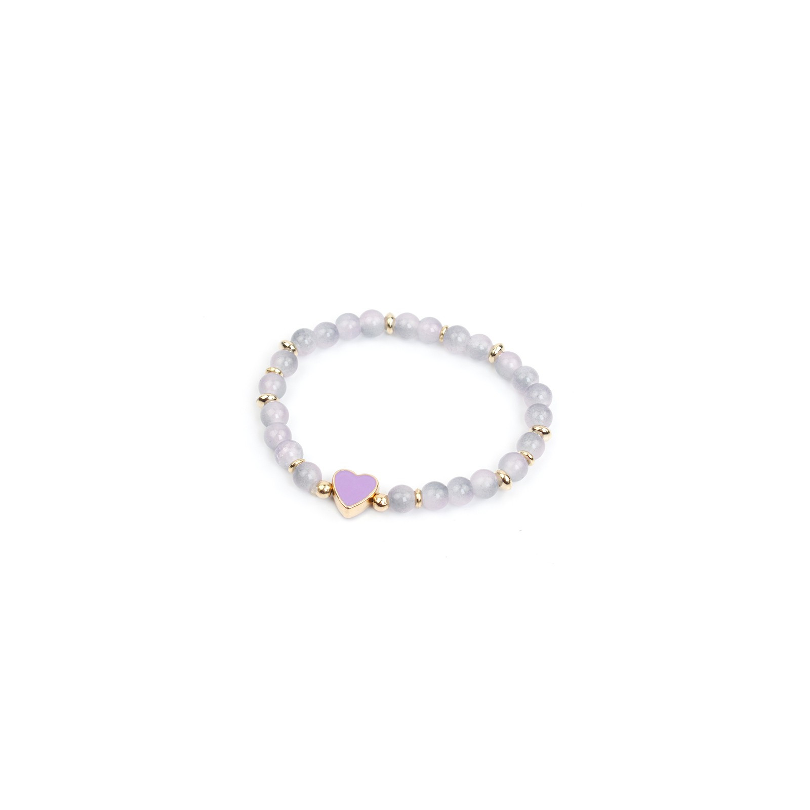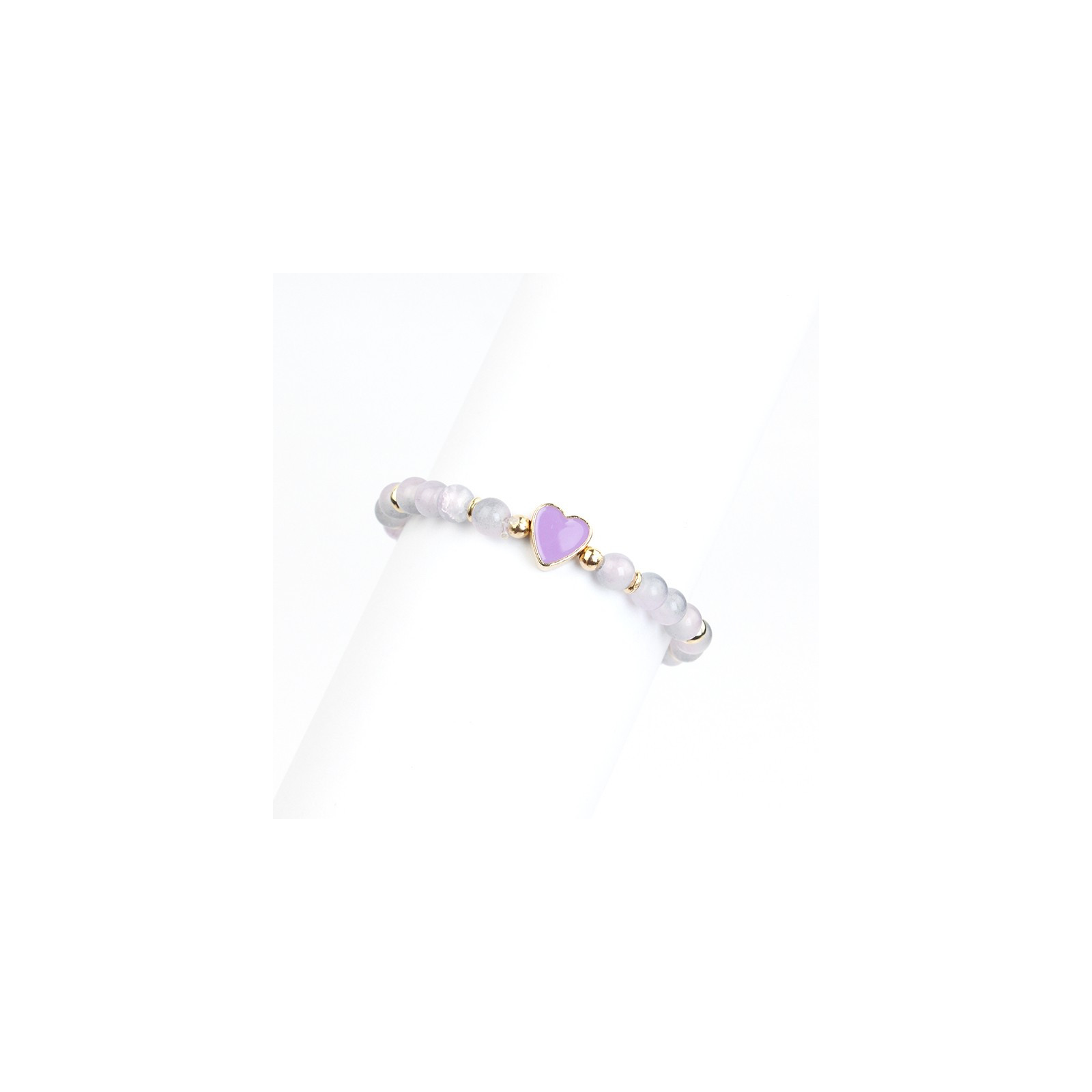 Pulsera elástica, elaborada en bolitas de vidrio diferenciadas, combinadas con piezas pasantes de CCB y dije exclusivo pintado a mano con forma de corazón.