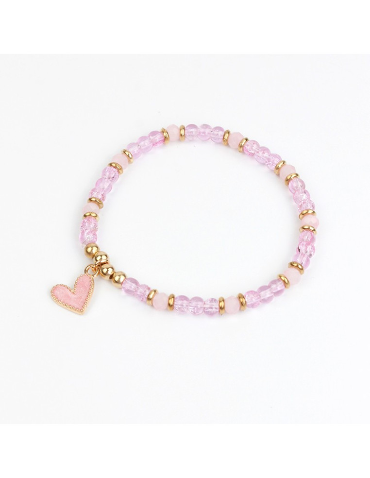 Pulsera elástica de bolitas de vidrio diferenciadas,combinadas con rocas de cristal, piezas pasantes de CCB y dije pasante con forma de corazón.