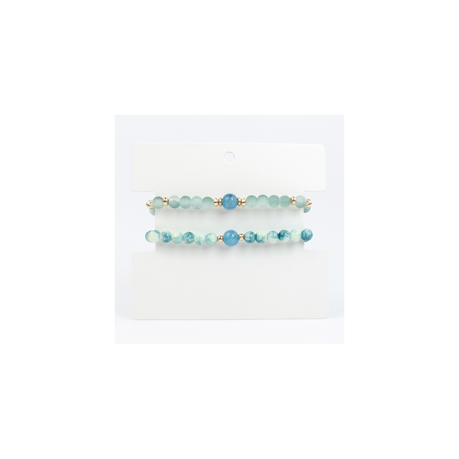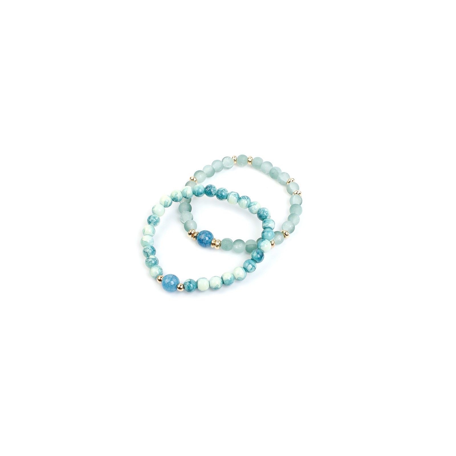 Set de dos pulseras elásticas de bolitas de vidrio marmoladas exclusivas combinadas con bolitas de vidrio diferenciadas y pasantes de CCB.