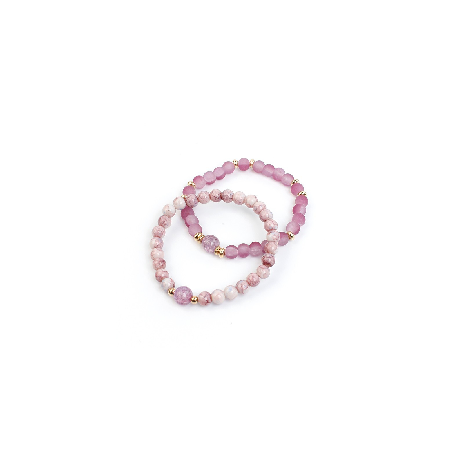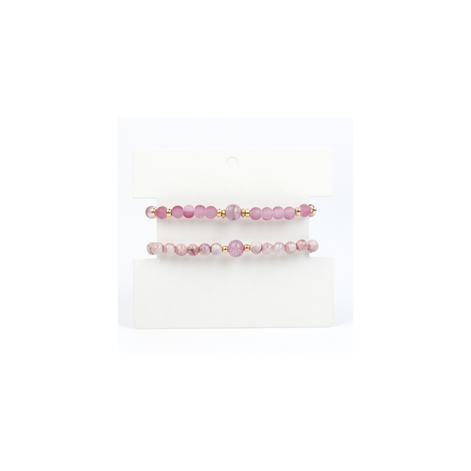 Set de dos pulseras elásticas de bolitas de vidrio marmoladas exclusivas combinadas con bolitas de vidrio diferenciadas y pasantes de CCB.