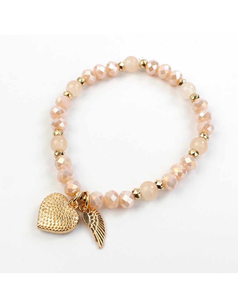 Pulsera elástica de roca de cristal y piezas de vidrio con dijes exclusivos dorados.