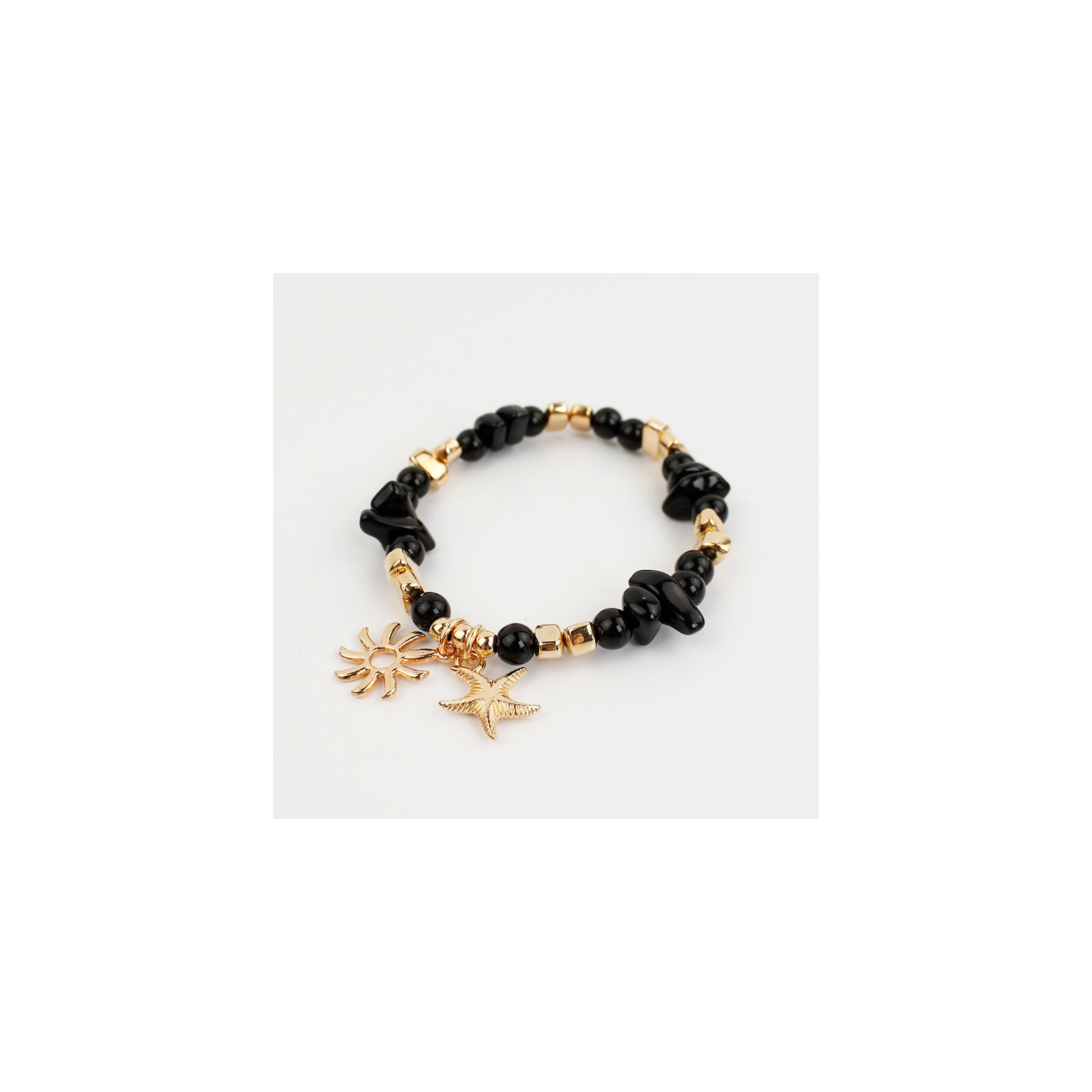 Pulsera elástica de escallas de acrílico, combinadas con bolitas de vidrio, pasantes de CCB y dijes exclusivos de verano.