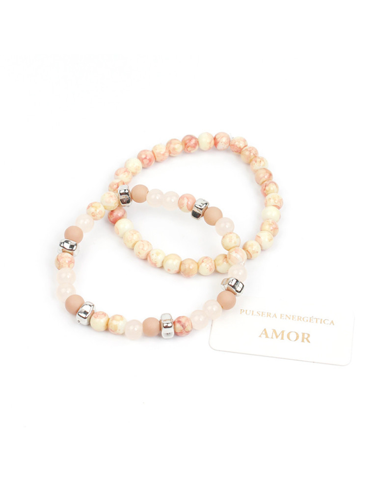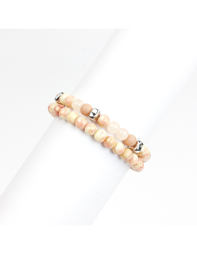 Set de dos pulseras elásticas de bolitas de vidrio energéticas marmoladas y estalladas combinadas con piezas pasantes de CCB.