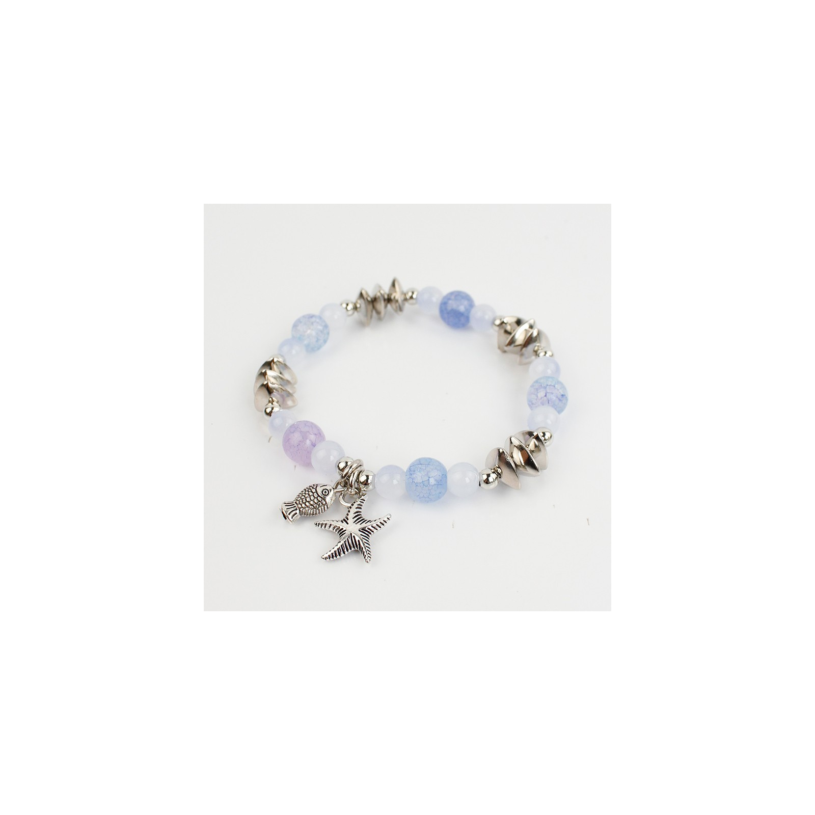 Pulsera elástica una de bolitas de vidrio diferenciadas, con dijes exclusivos de fundición combinado con piezas exclusivas de CCB níquel.